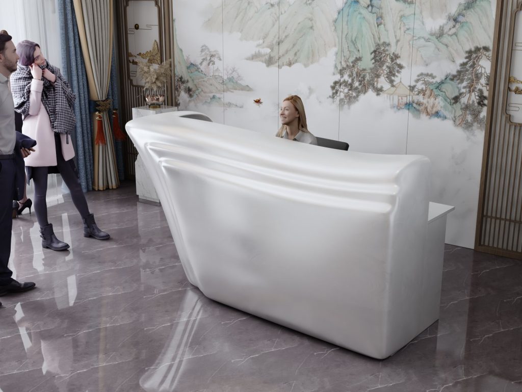 - Praktyczność: Ergonomiczna konstrukcja ułatwia pracę recepcjonisty, umożliwiając wygodną obsługę klientów, przechowywanie dokumentów i obsługę sprzętu biurowego.