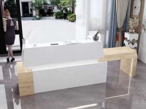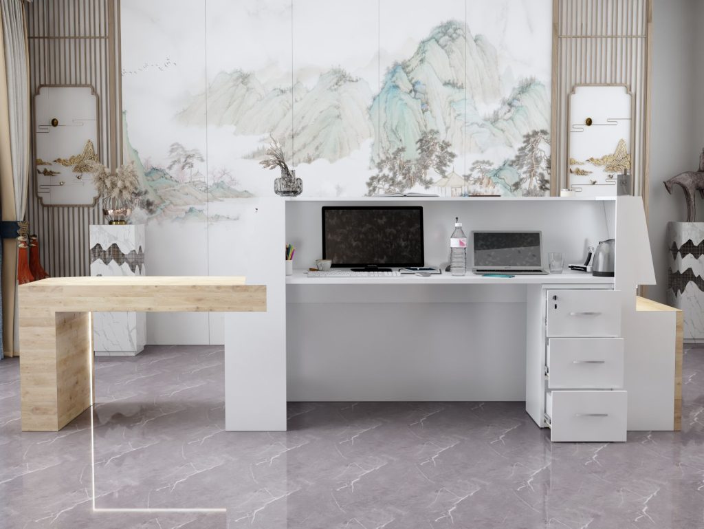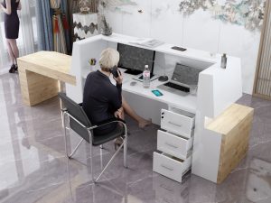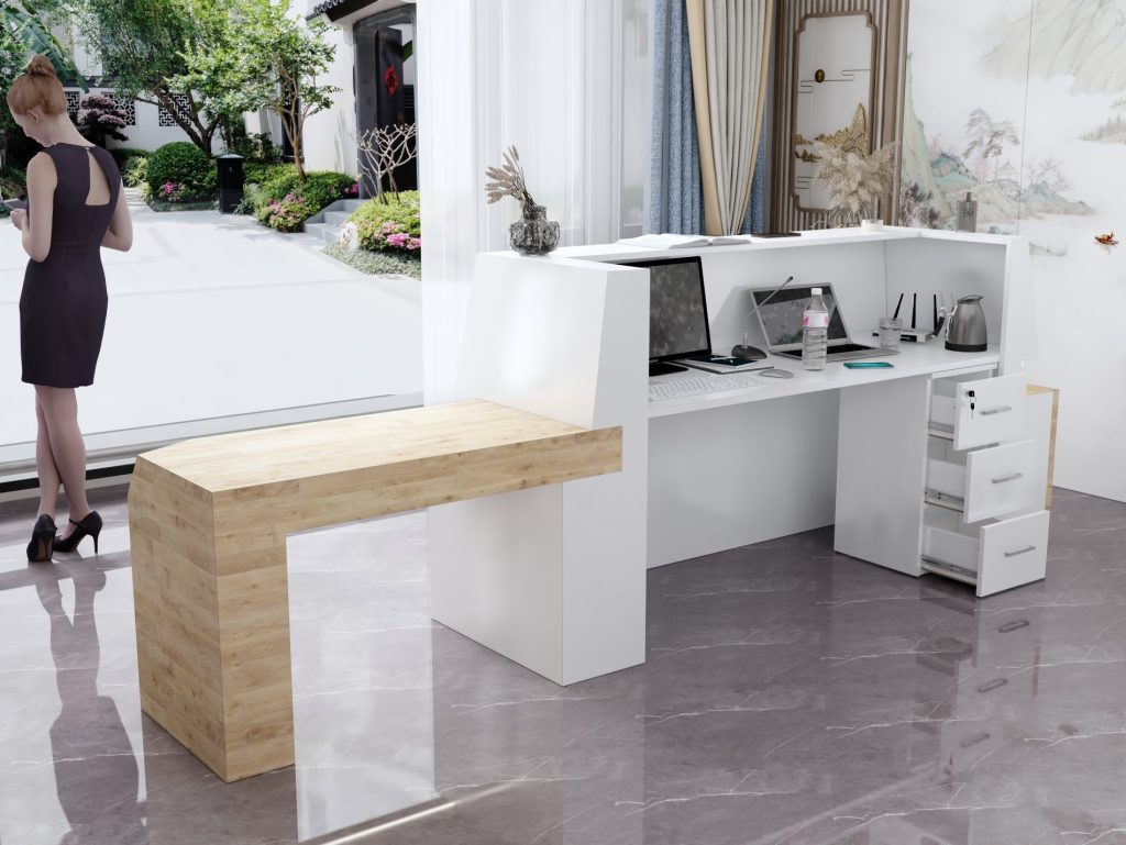 - Praktyczność: Ergonomiczna konstrukcja ułatwia pracę recepcjonisty, umożliwiając wygodną obsługę klientów, przechowywanie dokumentów i obsługę sprzętu biurowego.