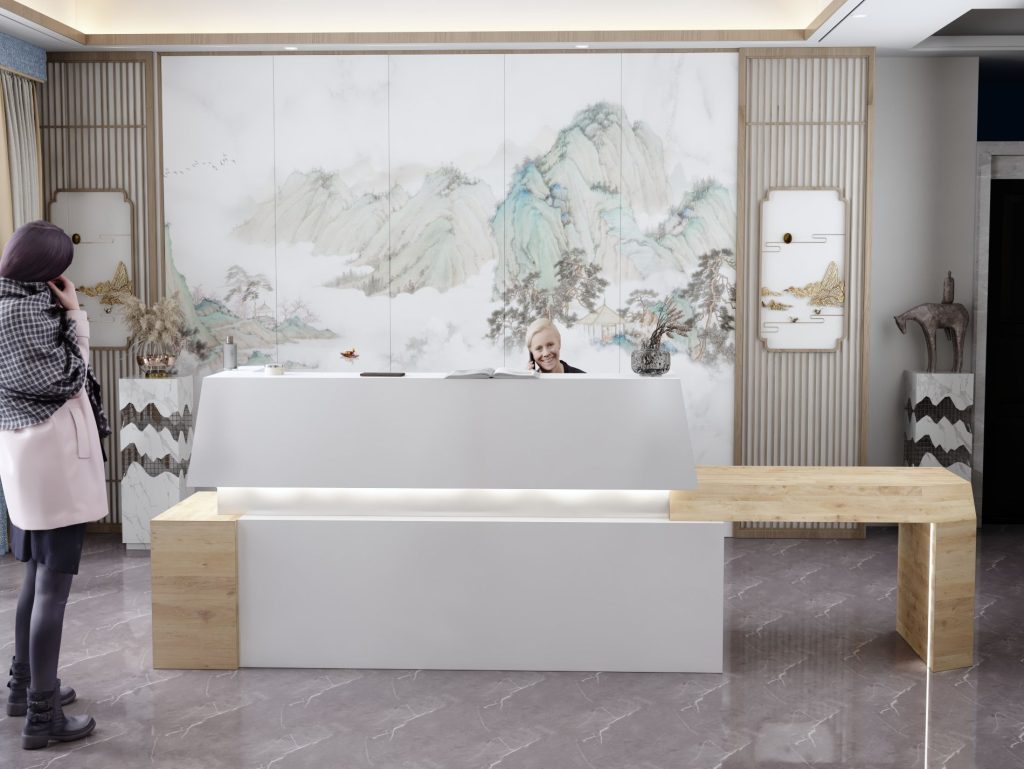 Minimalistyczna recepcja biurowa – Dostosowana do Twoich potrzeb.