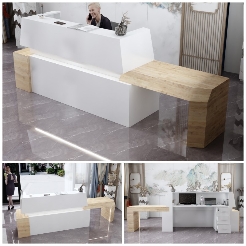- Praktyczność: Ergonomiczna konstrukcja ułatwia pracę recepcjonisty, umożliwiając wygodną obsługę klientów, przechowywanie dokumentów i obsługę sprzętu biurowego.