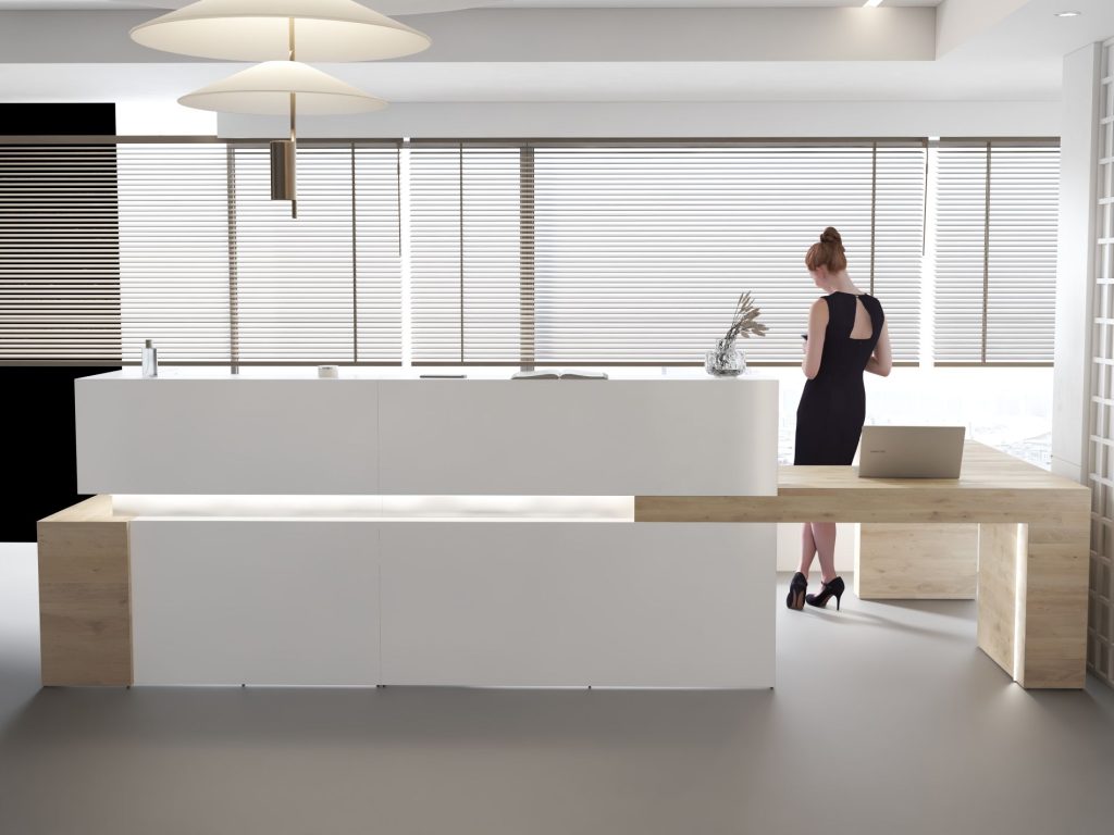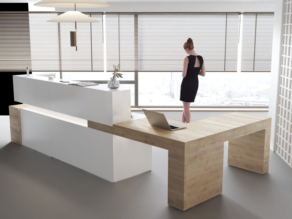 - Praktyczność: Ergonomiczna konstrukcja ułatwia pracę recepcjonisty, umożliwiając wygodną obsługę klientów, przechowywanie dokumentów i obsługę sprzętu biurowego.