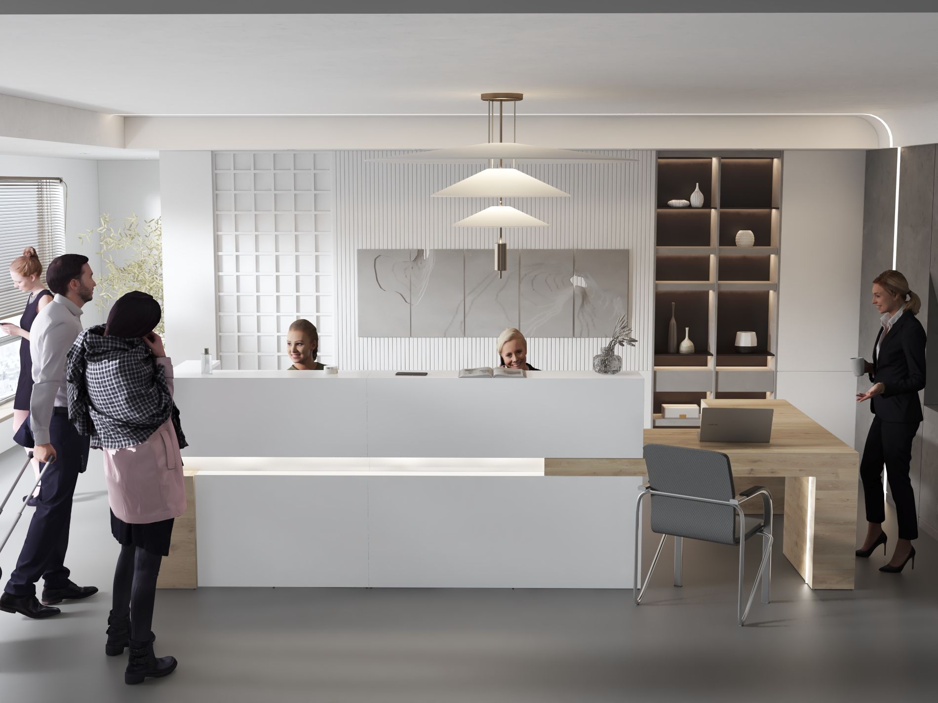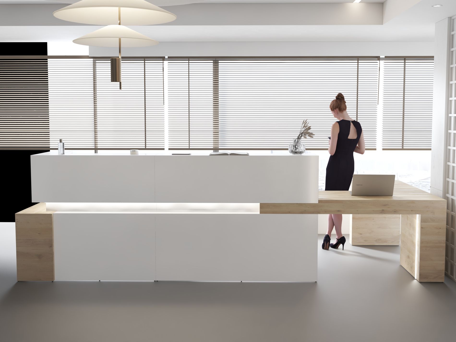 - Klasyczne lady biurowe: Proste i funkcjonalne, idealne do biur i urzędów.