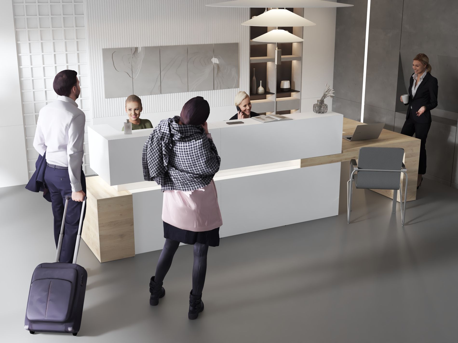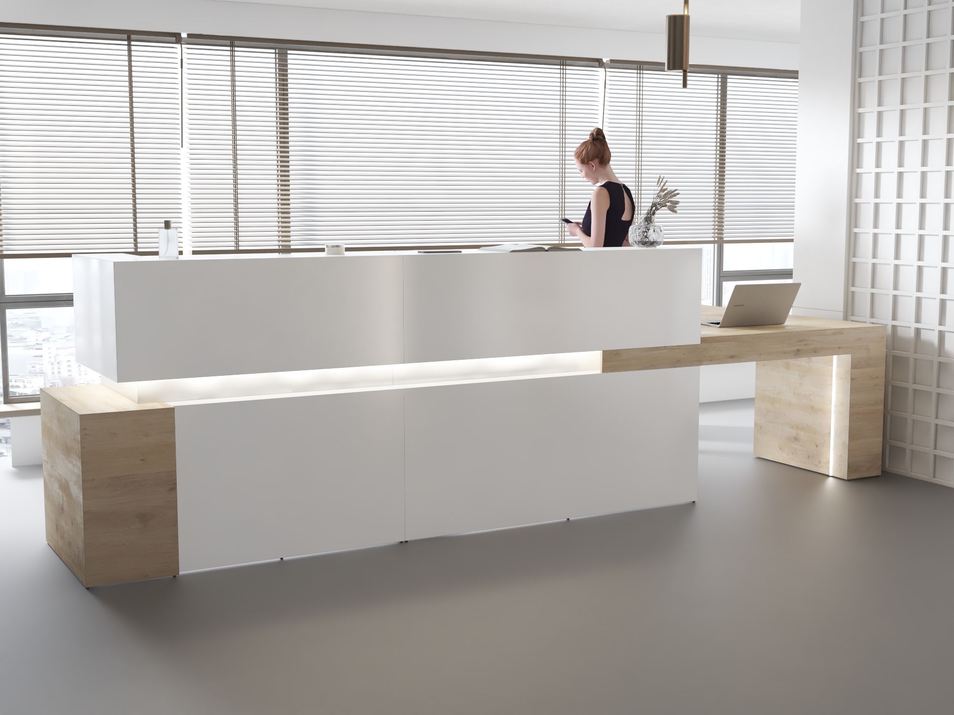 - Praktyczność: Ergonomiczna konstrukcja ułatwia pracę recepcjonisty, umożliwiając wygodną obsługę klientów, przechowywanie dokumentów i obsługę sprzętu biurowego.