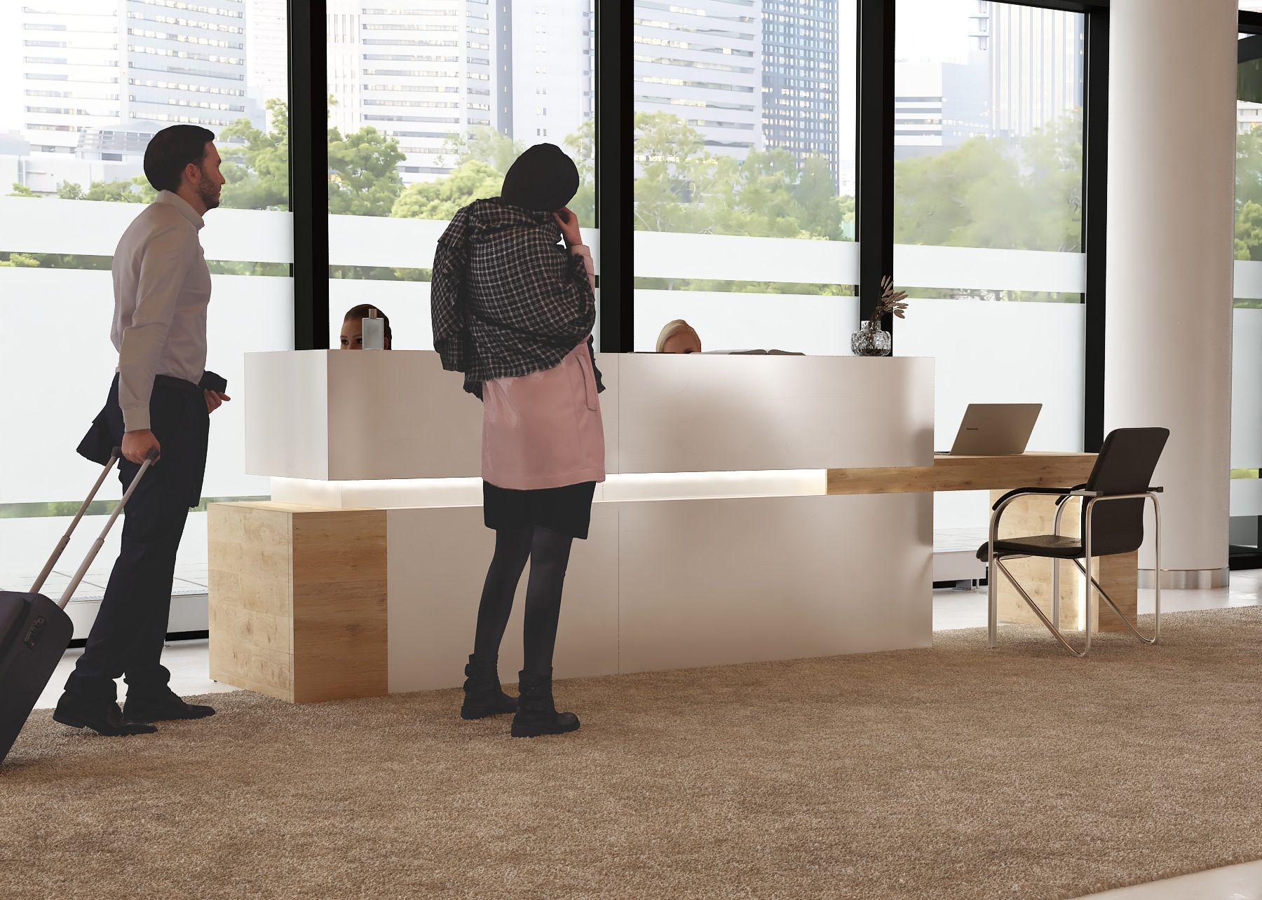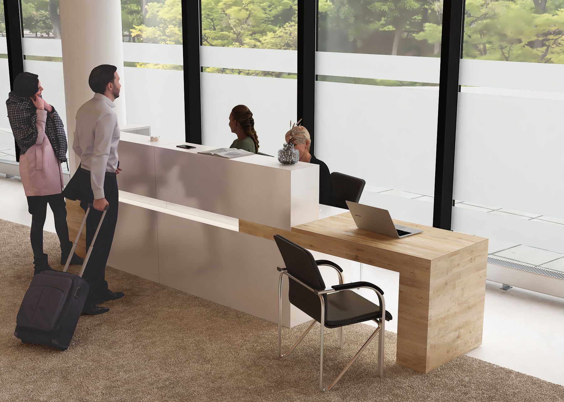 - Praktyczność: Ergonomiczna konstrukcja ułatwia pracę recepcjonisty, umożliwiając wygodną obsługę klientów, przechowywanie dokumentów i obsługę sprzętu biurowego.
