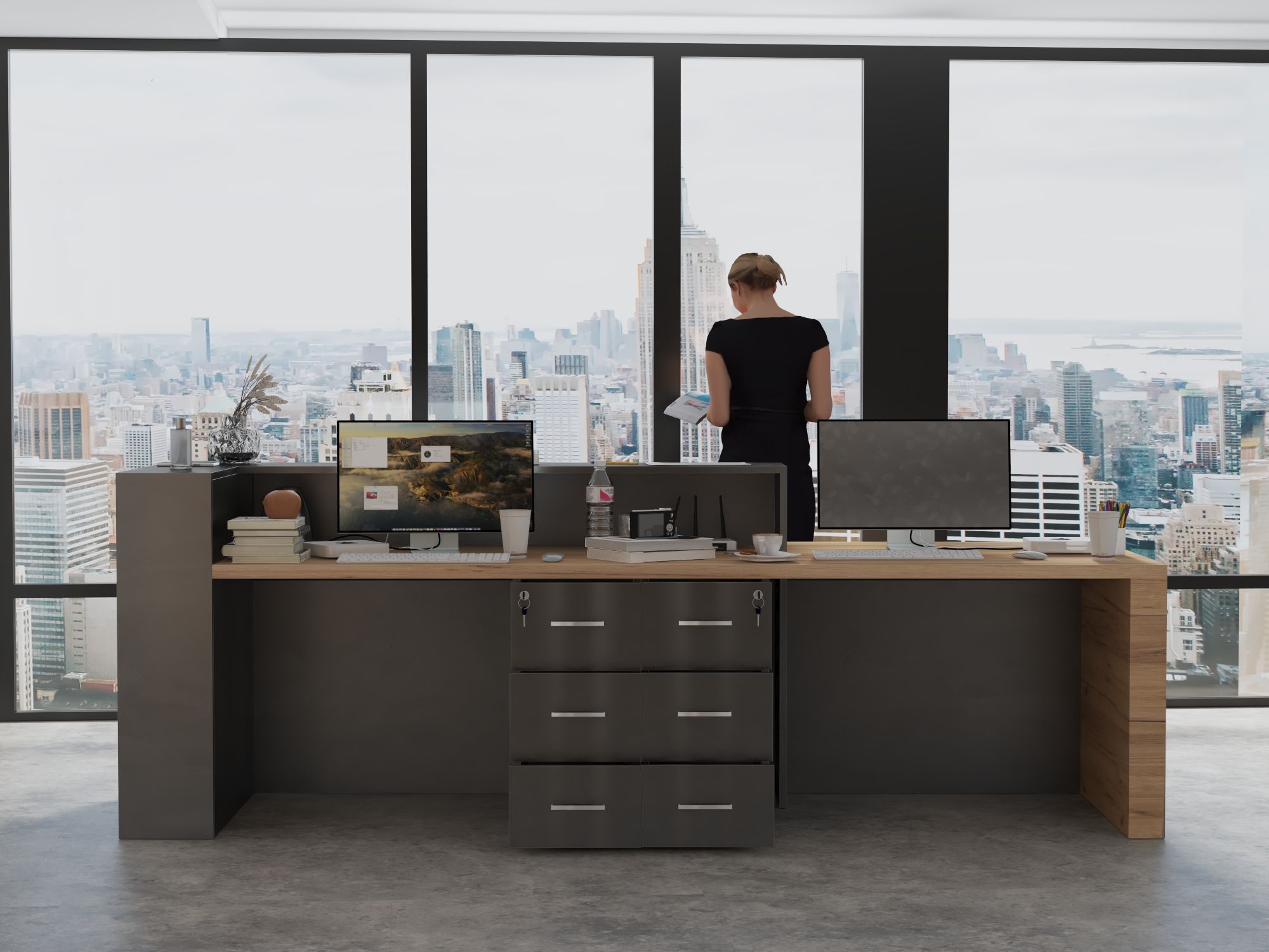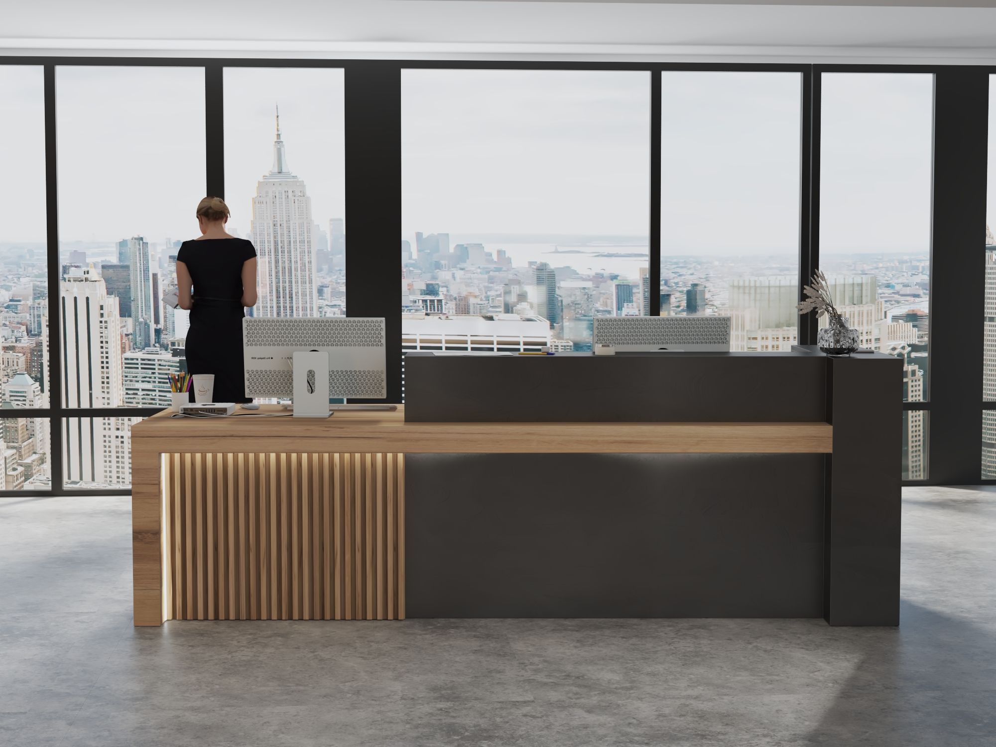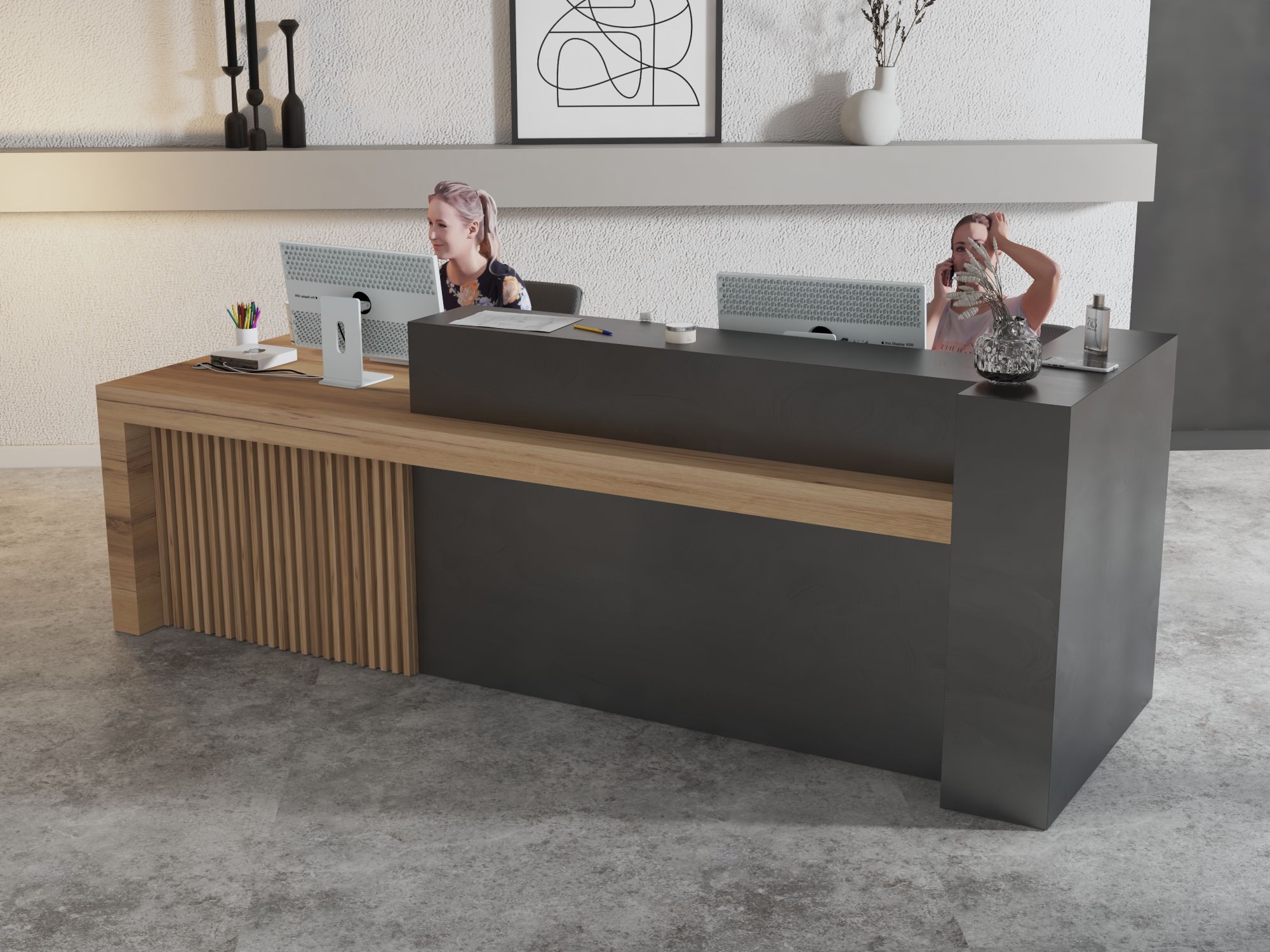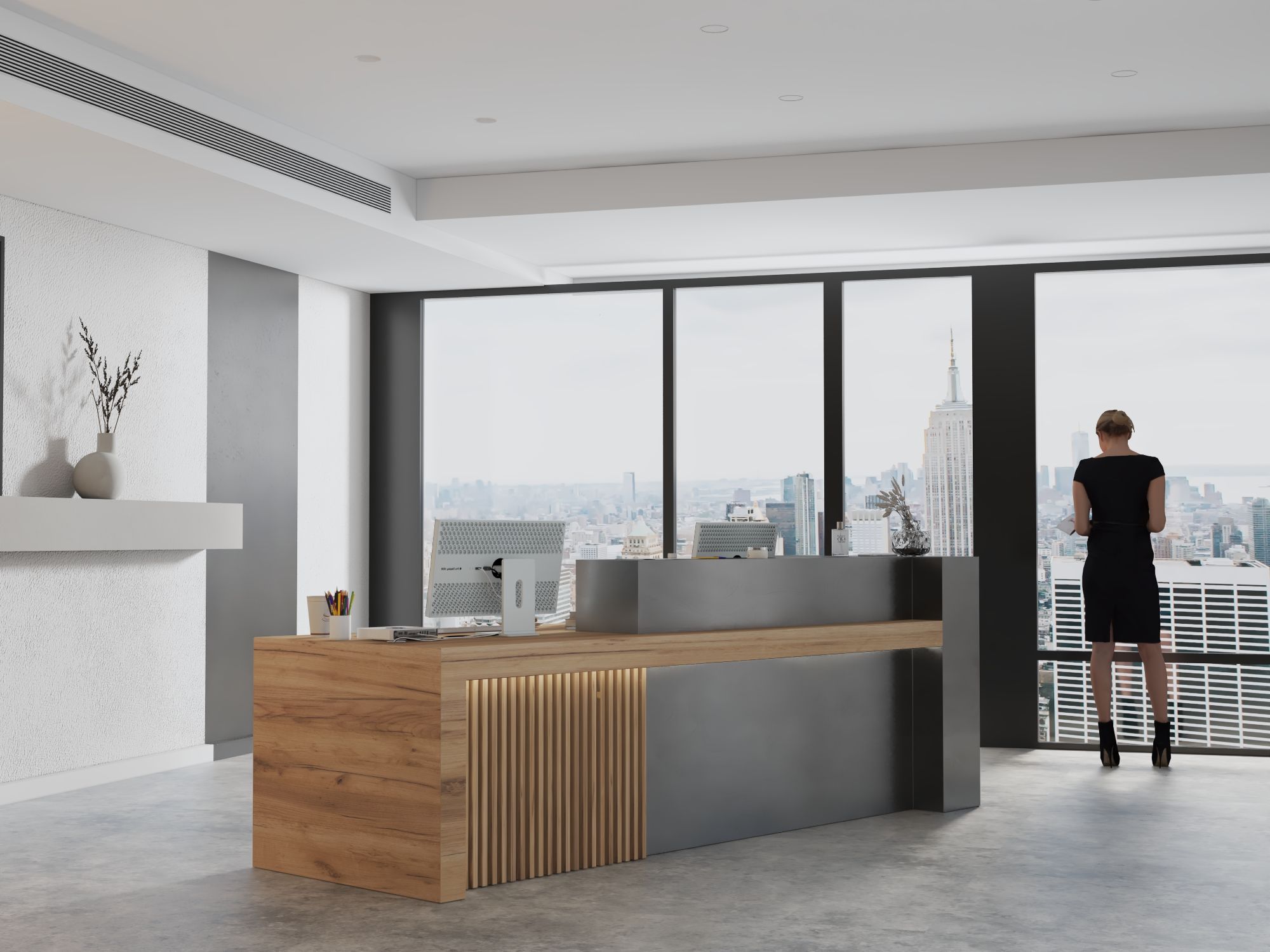 - Praktyczność: Ergonomiczna konstrukcja ułatwia pracę recepcjonisty, umożliwiając wygodną obsługę klientów, przechowywanie dokumentów i obsługę sprzętu biurowego.