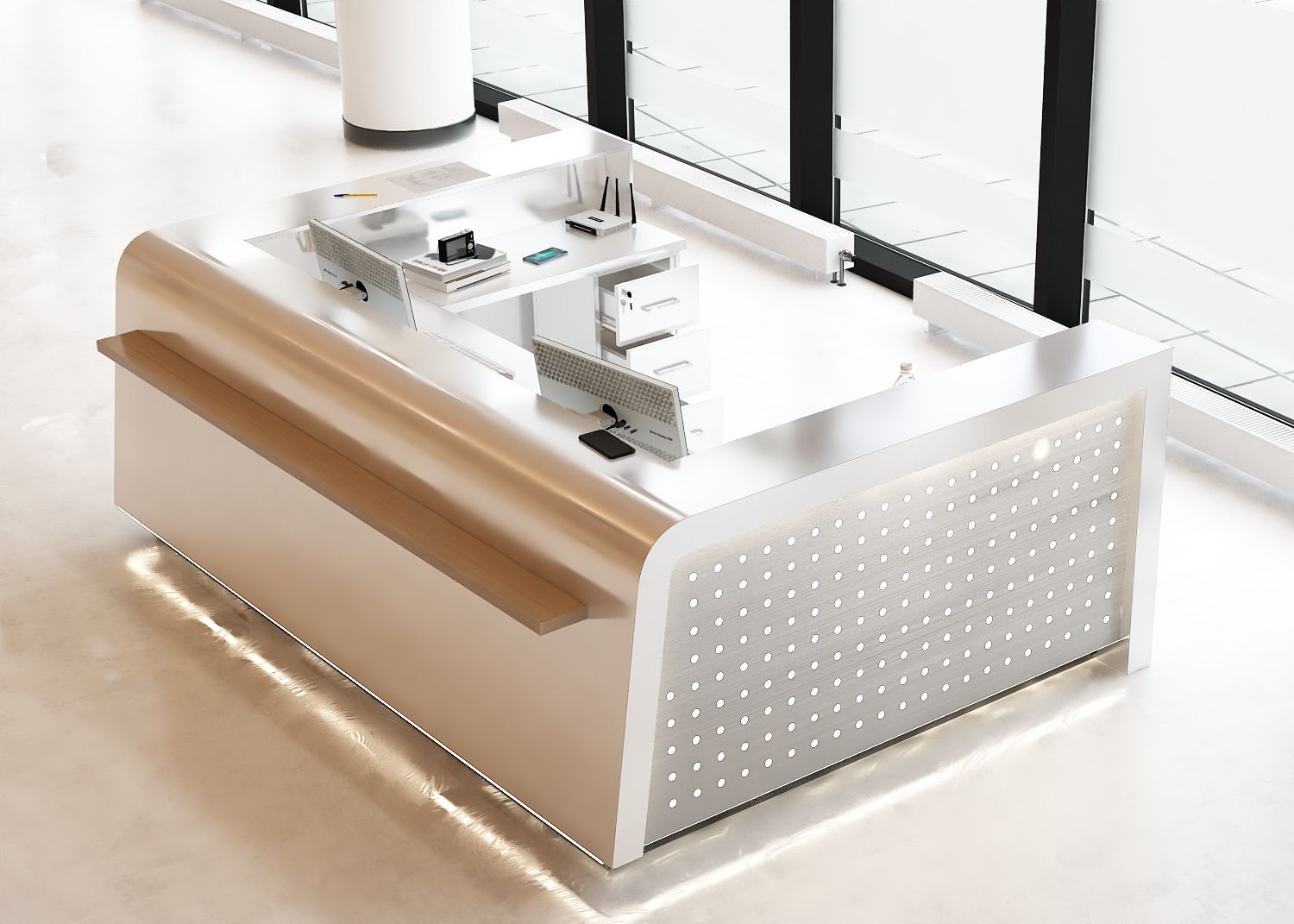 - Klasyczne lady biurowe: Proste i funkcjonalne, idealne do biur i urzędów.