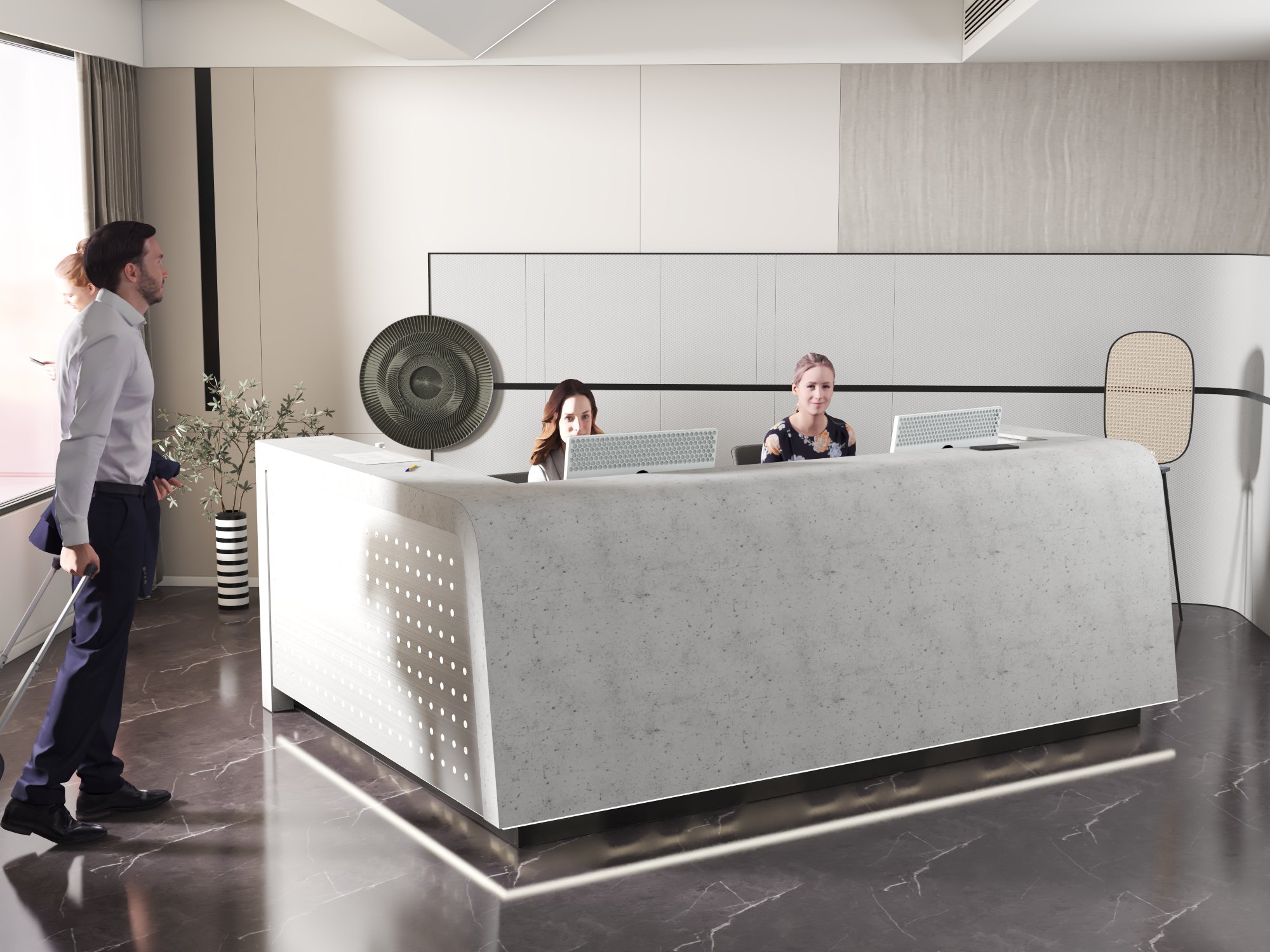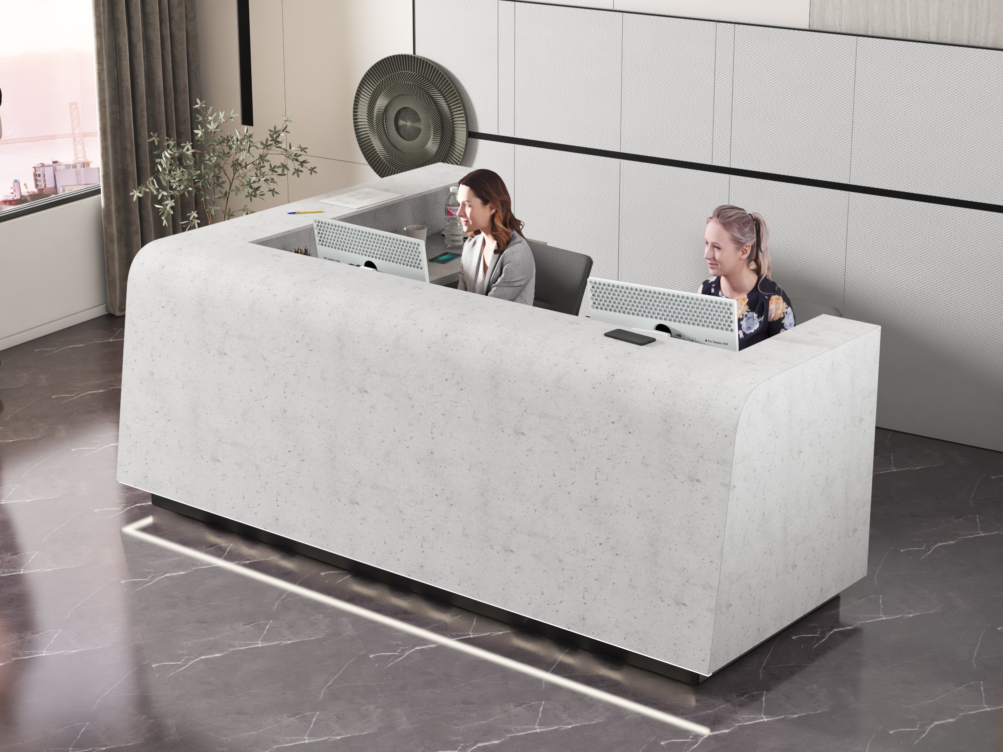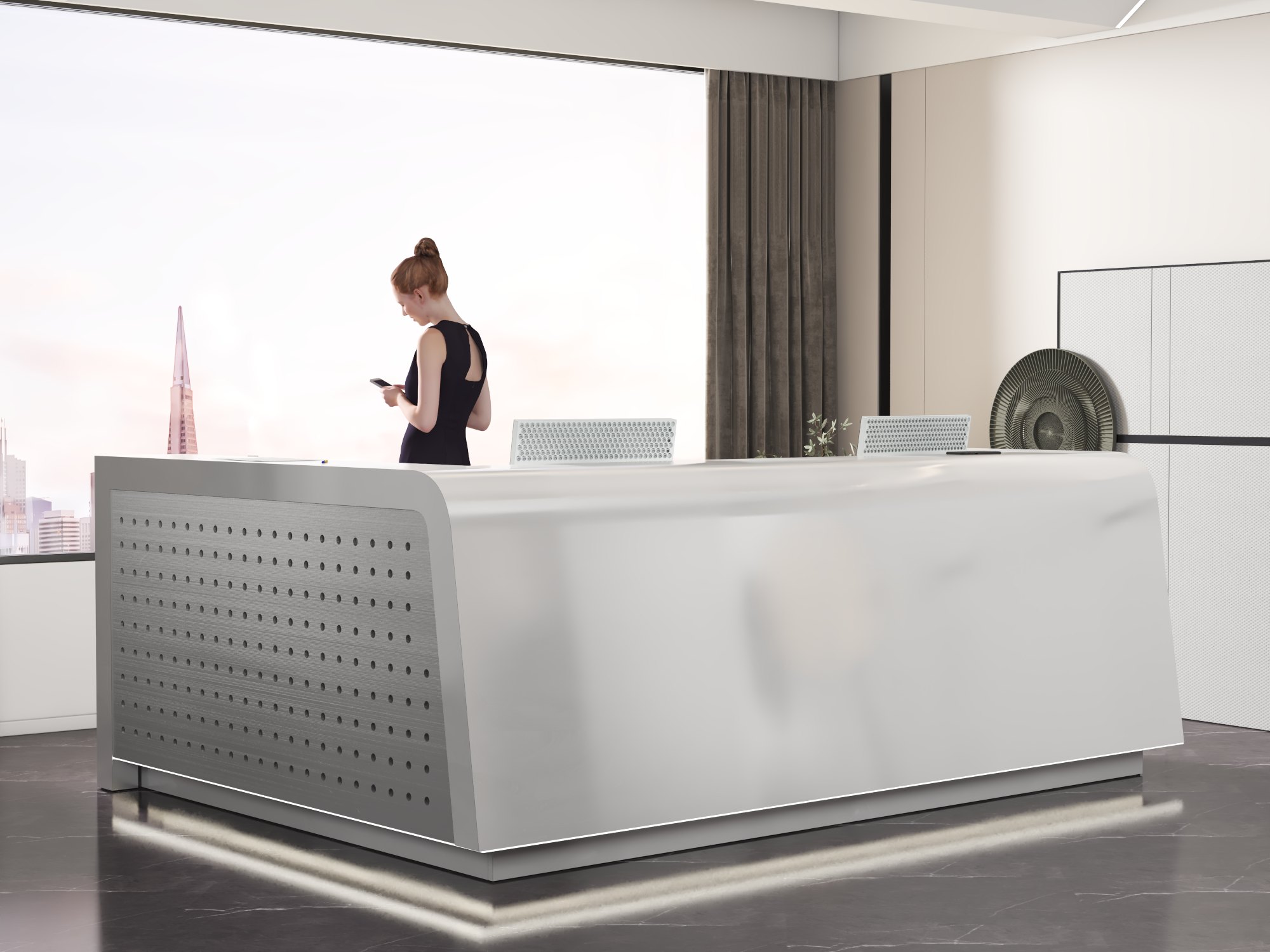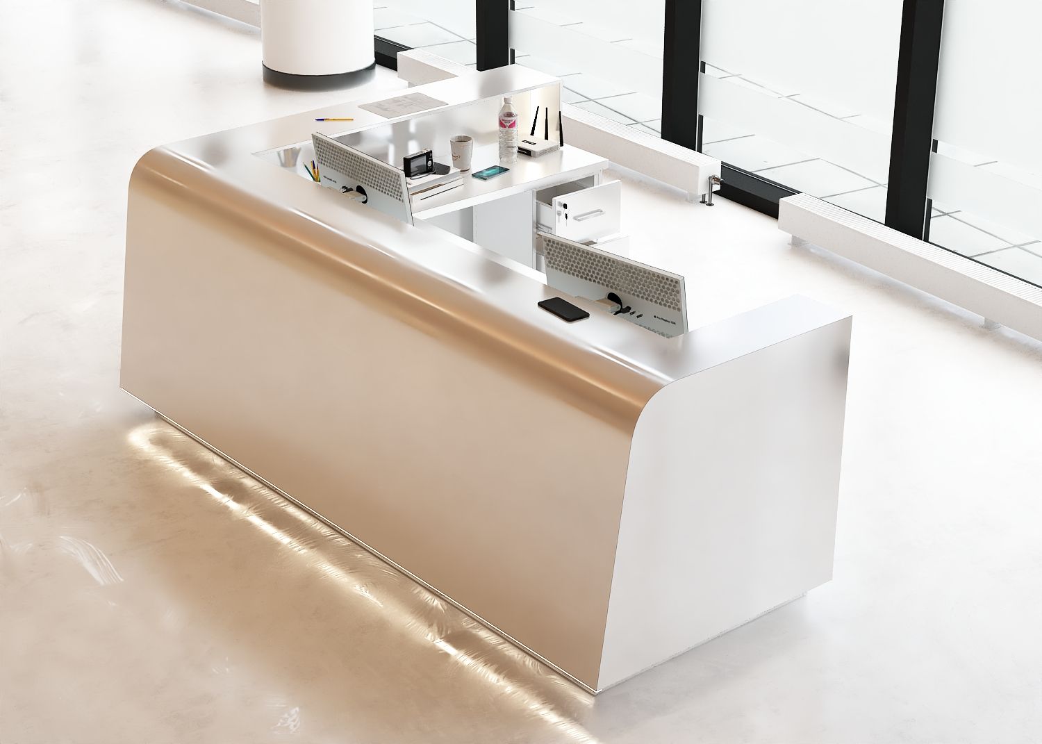 - Praktyczność: Ergonomiczna konstrukcja ułatwia pracę recepcjonisty, umożliwiając wygodną obsługę klientów, przechowywanie dokumentów i obsługę sprzętu biurowego.