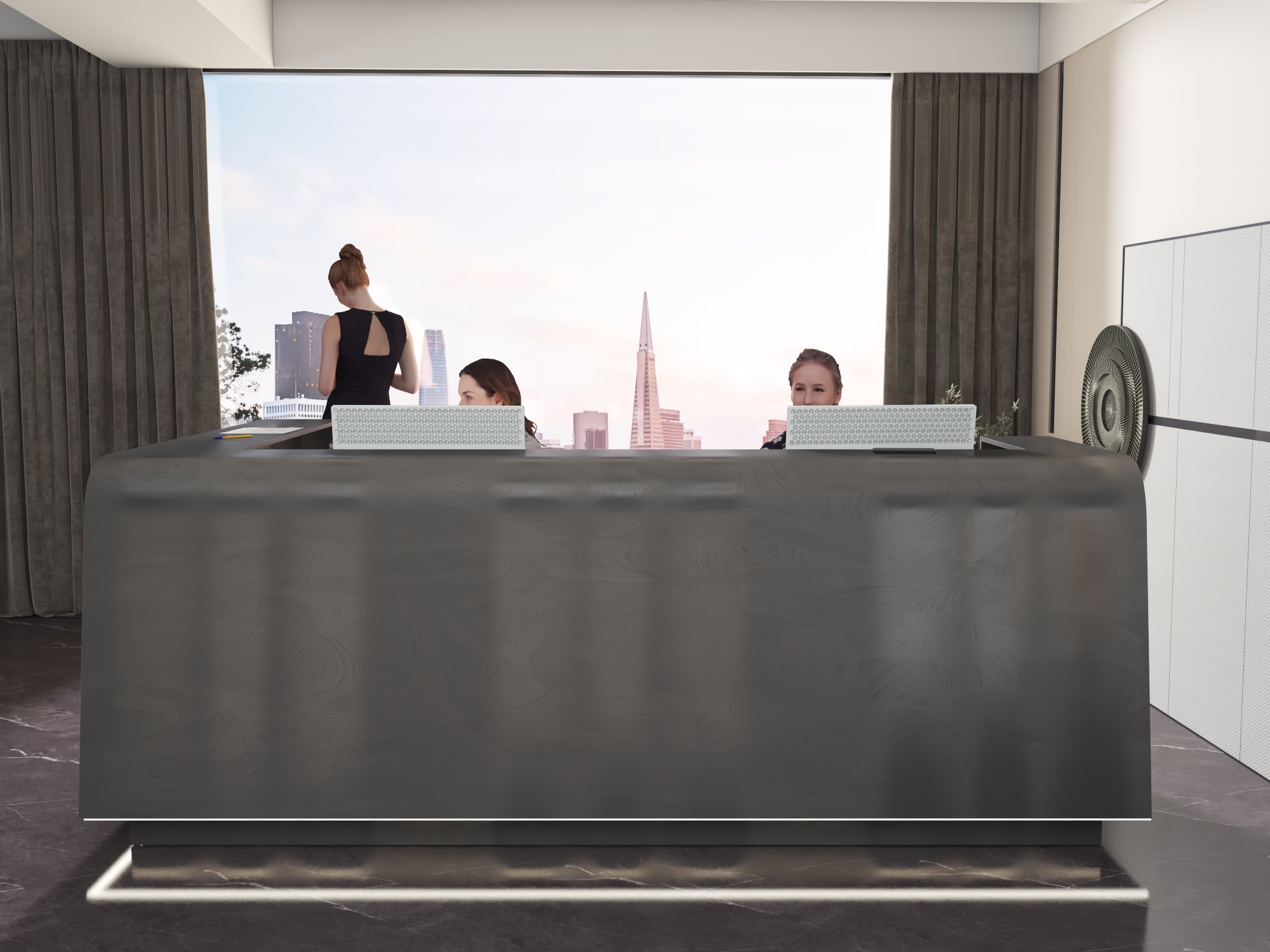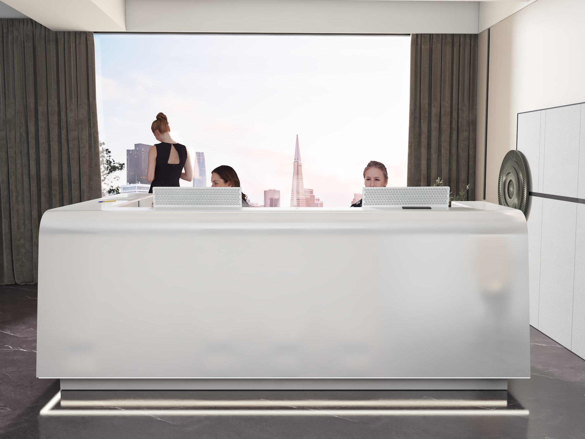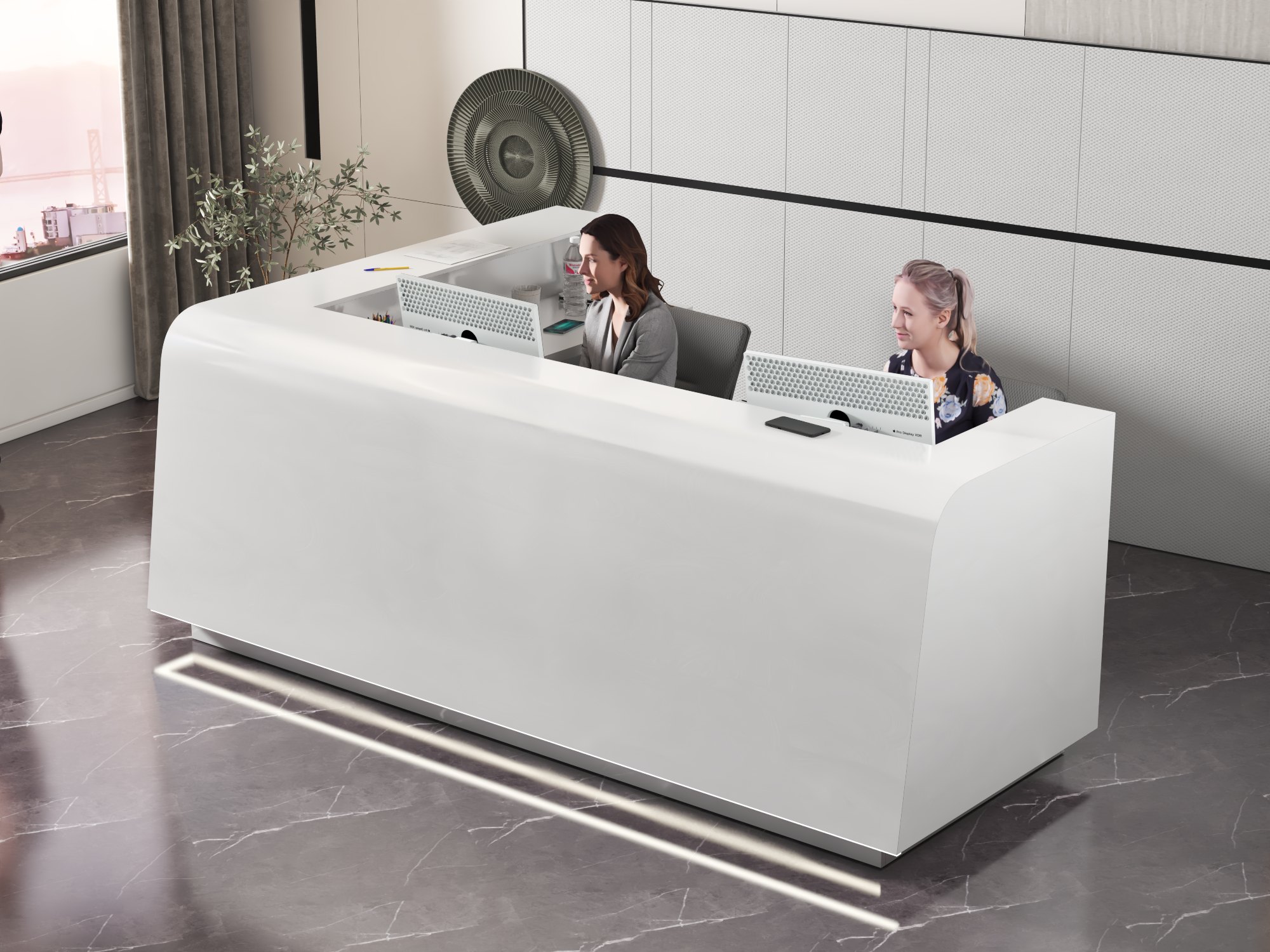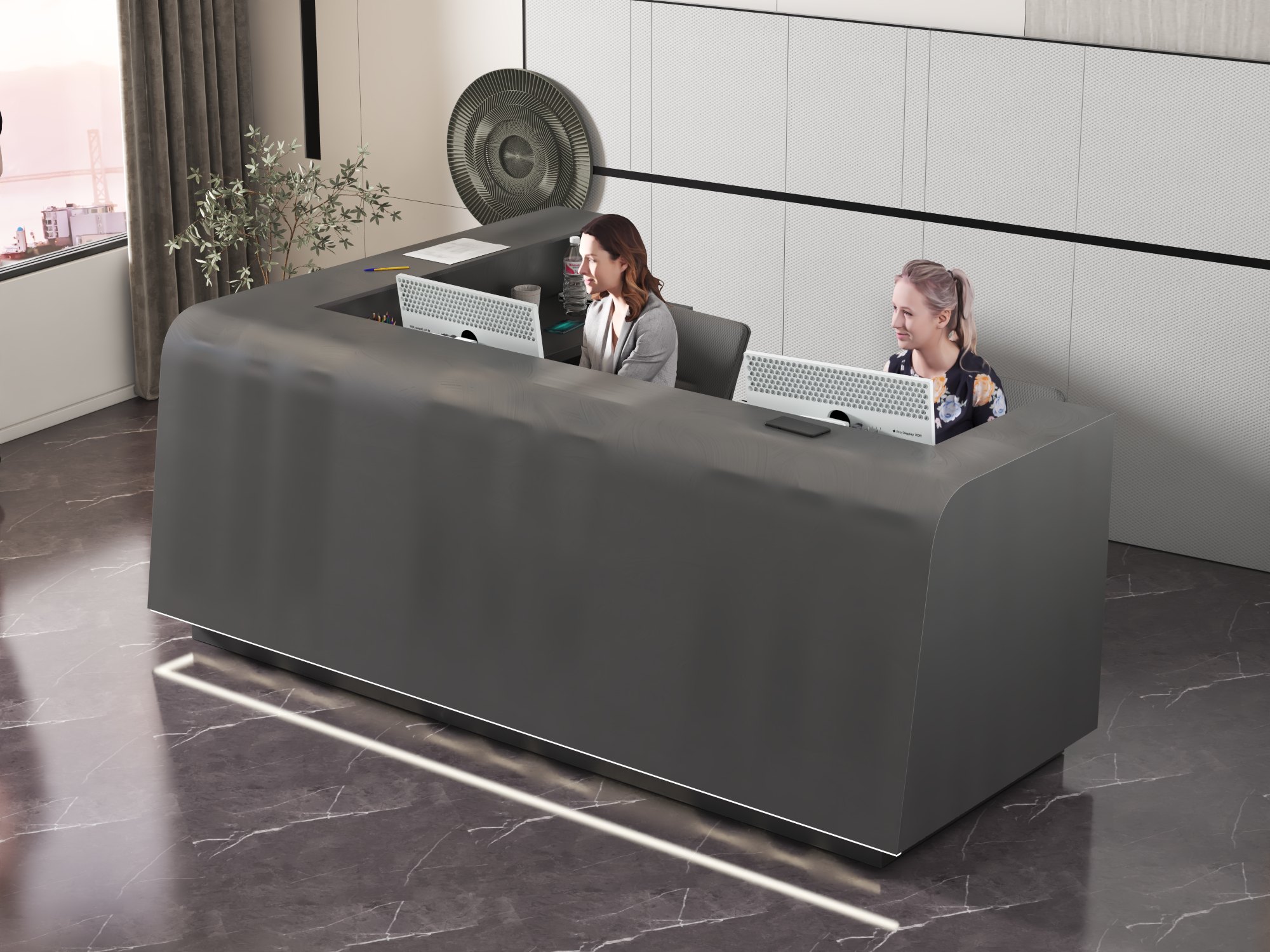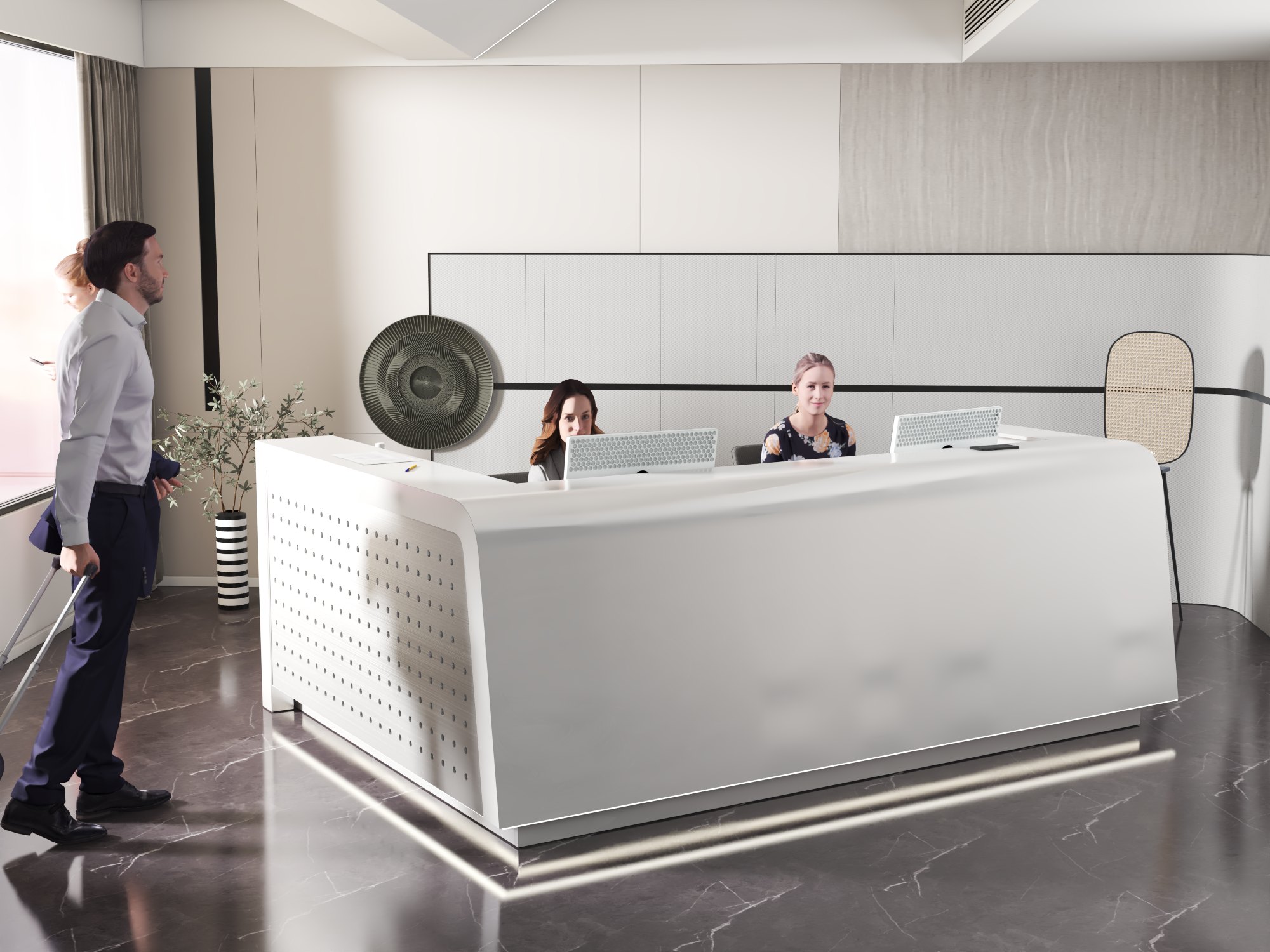 - Praktyczność: Ergonomiczna konstrukcja ułatwia pracę recepcjonisty, umożliwiając wygodną obsługę klientów, przechowywanie dokumentów i obsługę sprzętu biurowego.
