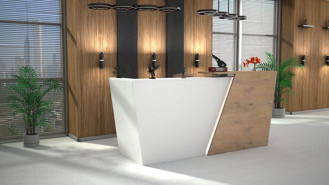 - Praktyczność: Ergonomiczna konstrukcja ułatwia pracę recepcjonisty, umożliwiając wygodną obsługę klientów, przechowywanie dokumentów i obsługę sprzętu biurowego.
