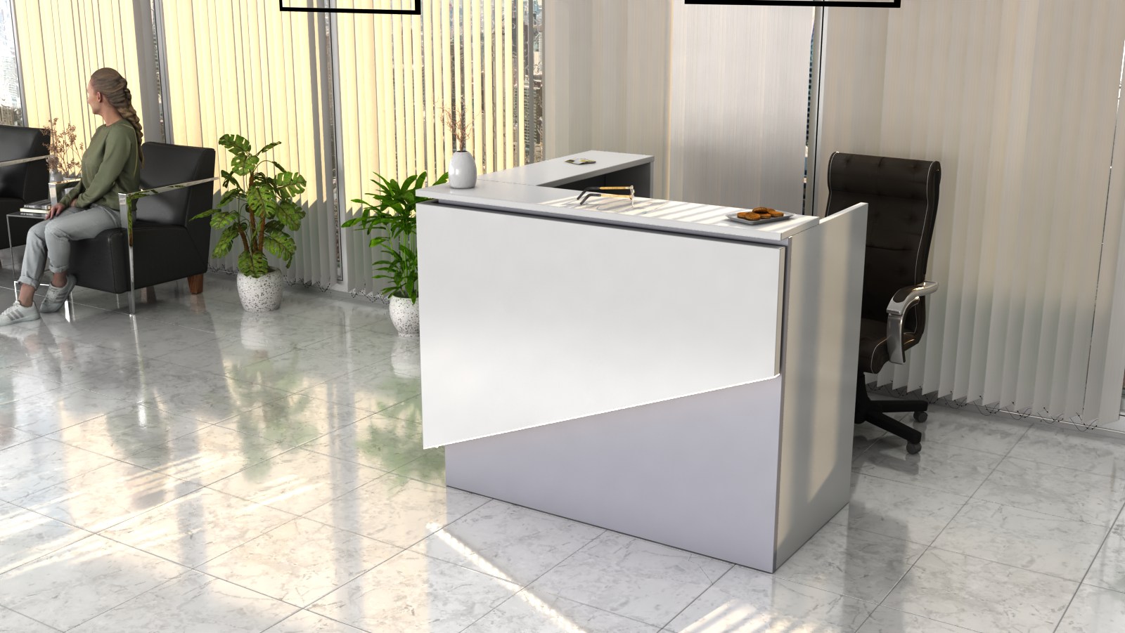 2. Praktyczność: Ergonomiczna konstrukcja ułatwia pracę recepcjonisty, umożliwiając wygodną obsługę klientów, przechowywanie dokumentów i obsługę sprzętu biurowego.