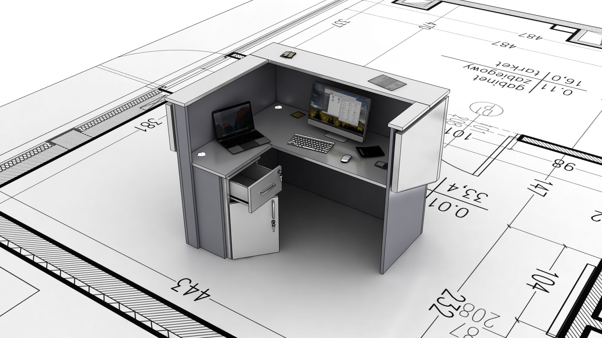 Lada recepcyjna do gabinetu z wizualizacją 3D