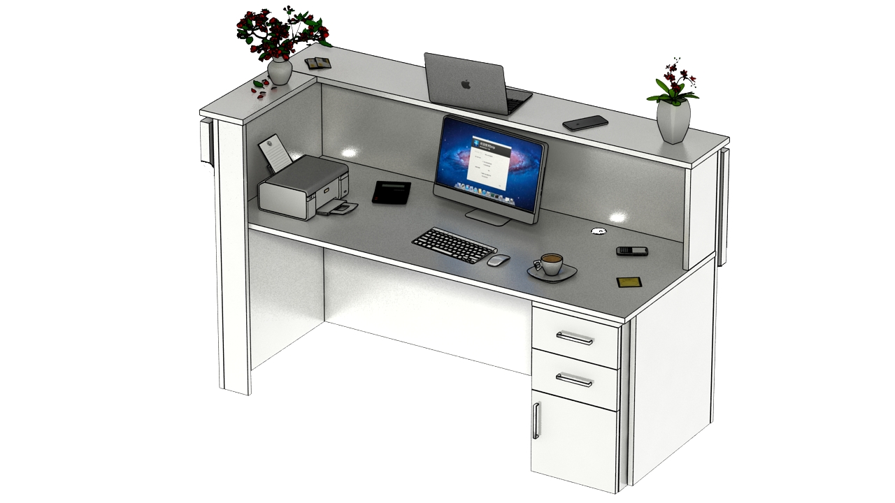2. Praktyczność: Ergonomiczna konstrukcja ułatwia pracę recepcjonisty, umożliwiając wygodną obsługę klientów, przechowywanie dokumentów i obsługę sprzętu biurowego.
