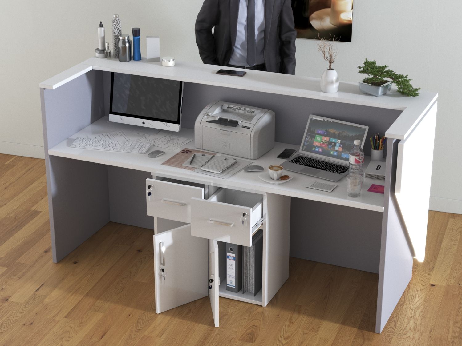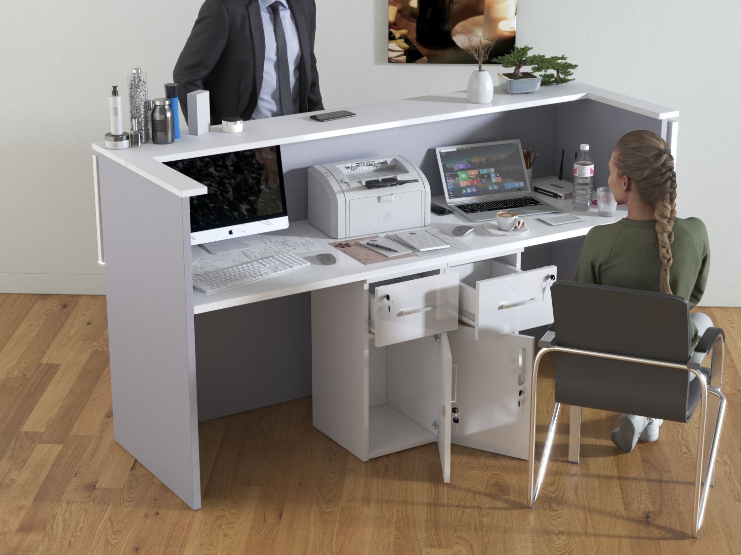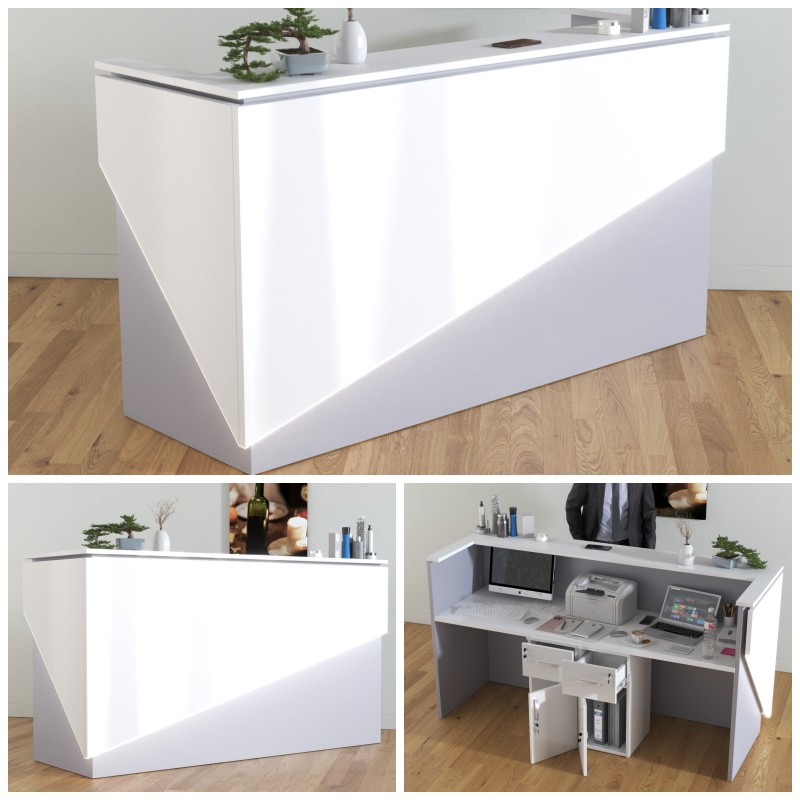 - Praktyczność: Ergonomiczna konstrukcja ułatwia pracę recepcjonisty, umożliwiając wygodną obsługę klientów, przechowywanie dokumentów i obsługę sprzętu biurowego.