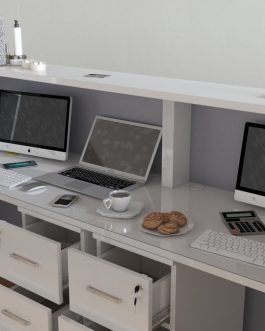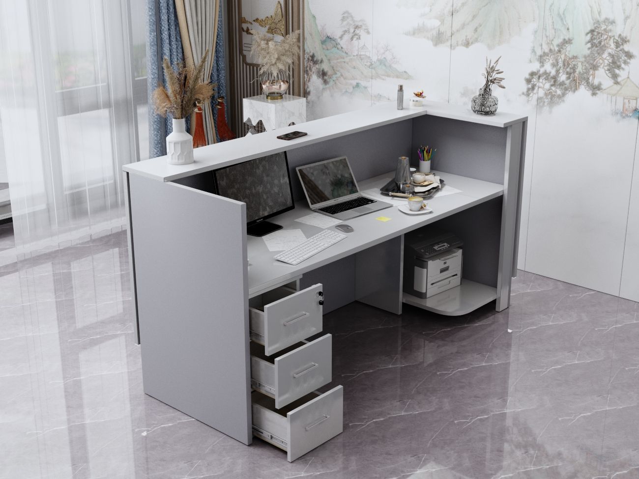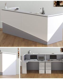 - Praktyczność: Ergonomiczna konstrukcja ułatwia pracę recepcjonisty, umożliwiając wygodną obsługę klientów, przechowywanie dokumentów i obsługę sprzętu biurowego.