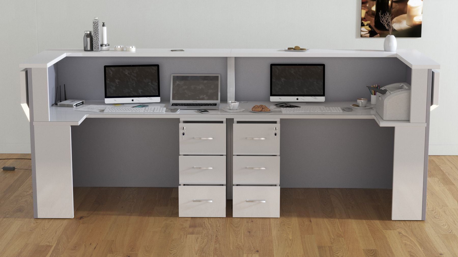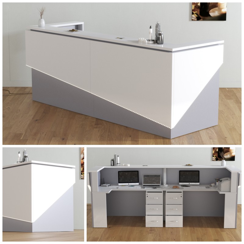 2. Praktyczność: Ergonomiczna konstrukcja ułatwia pracę recepcjonisty, umożliwiając wygodną obsługę klientów, przechowywanie dokumentów i obsługę sprzętu biurowego.