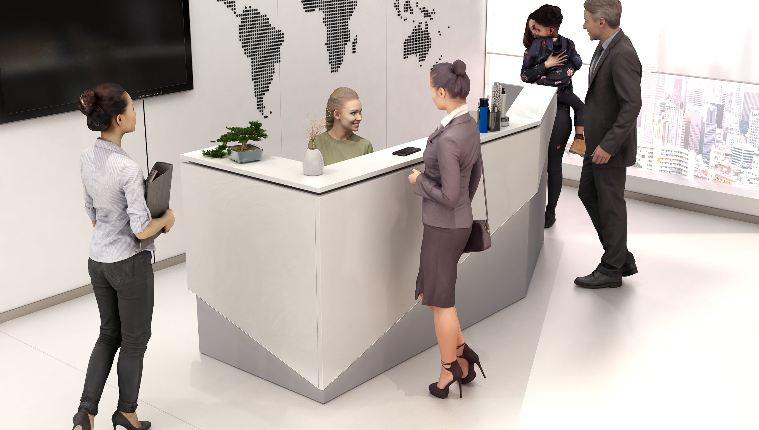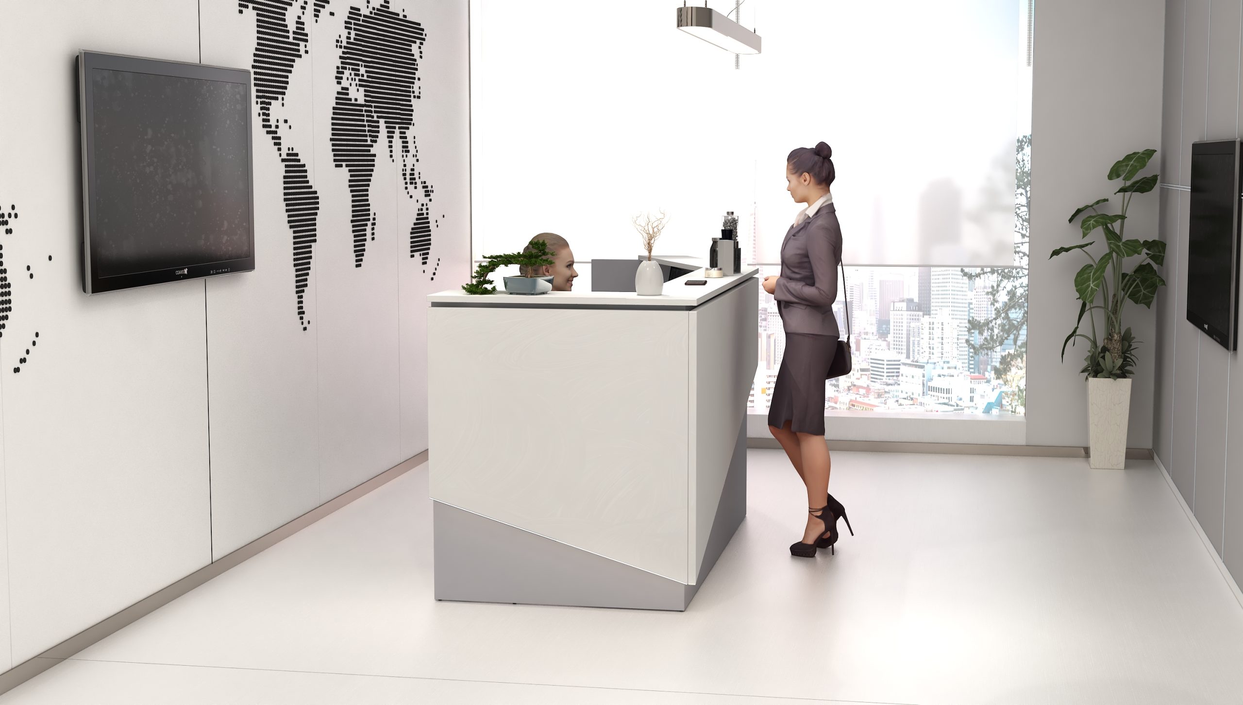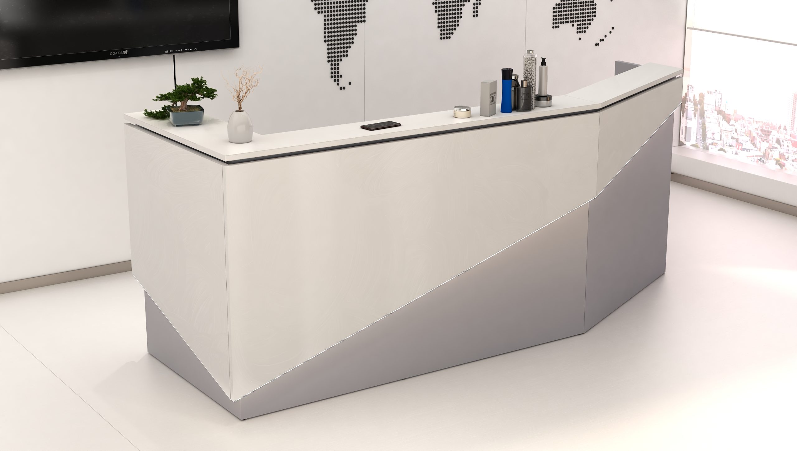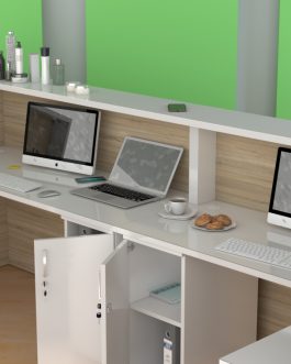 - Praktyczność: Ergonomiczna konstrukcja ułatwia pracę recepcjonisty, umożliwiając wygodną obsługę klientów, przechowywanie dokumentów i obsługę sprzętu biurowego.