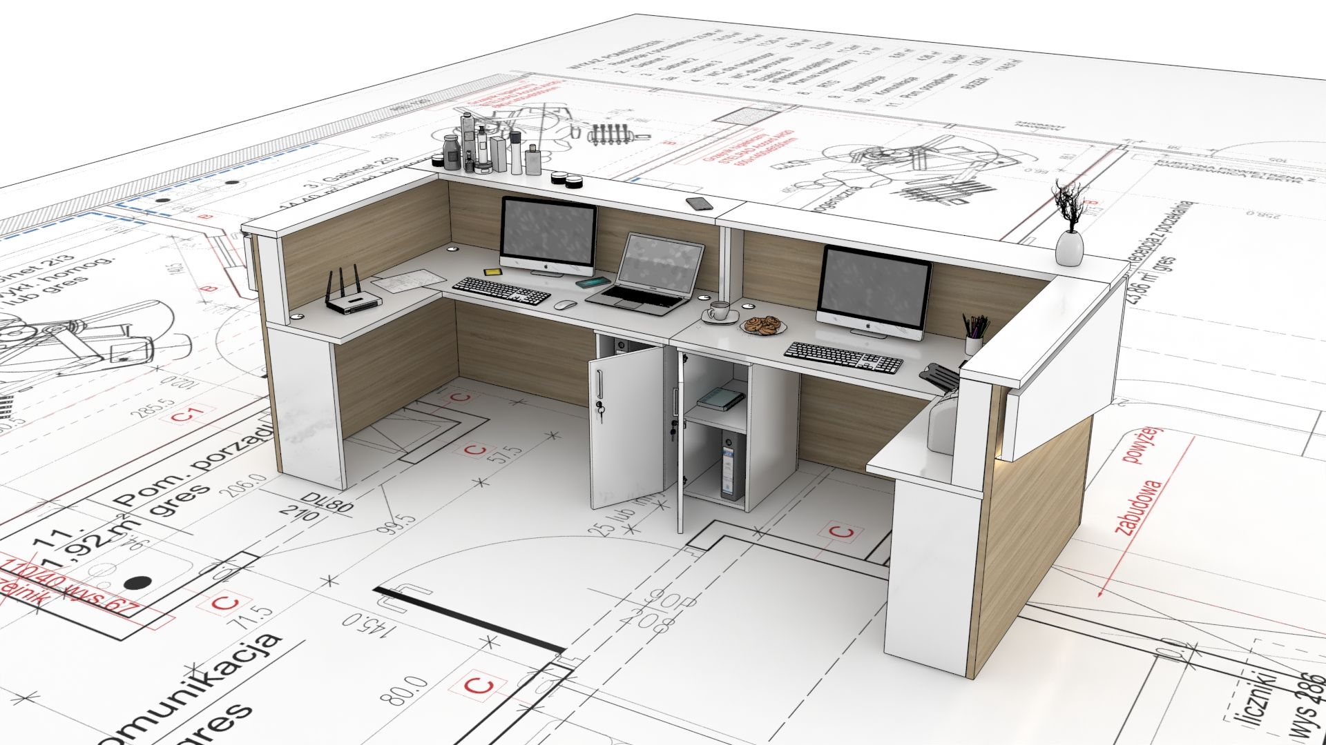Lada recepcyjna dla gminy z wizualizacją 3D