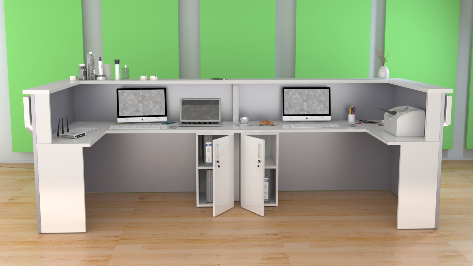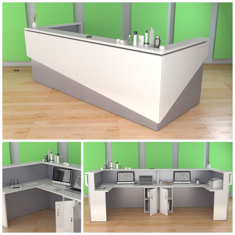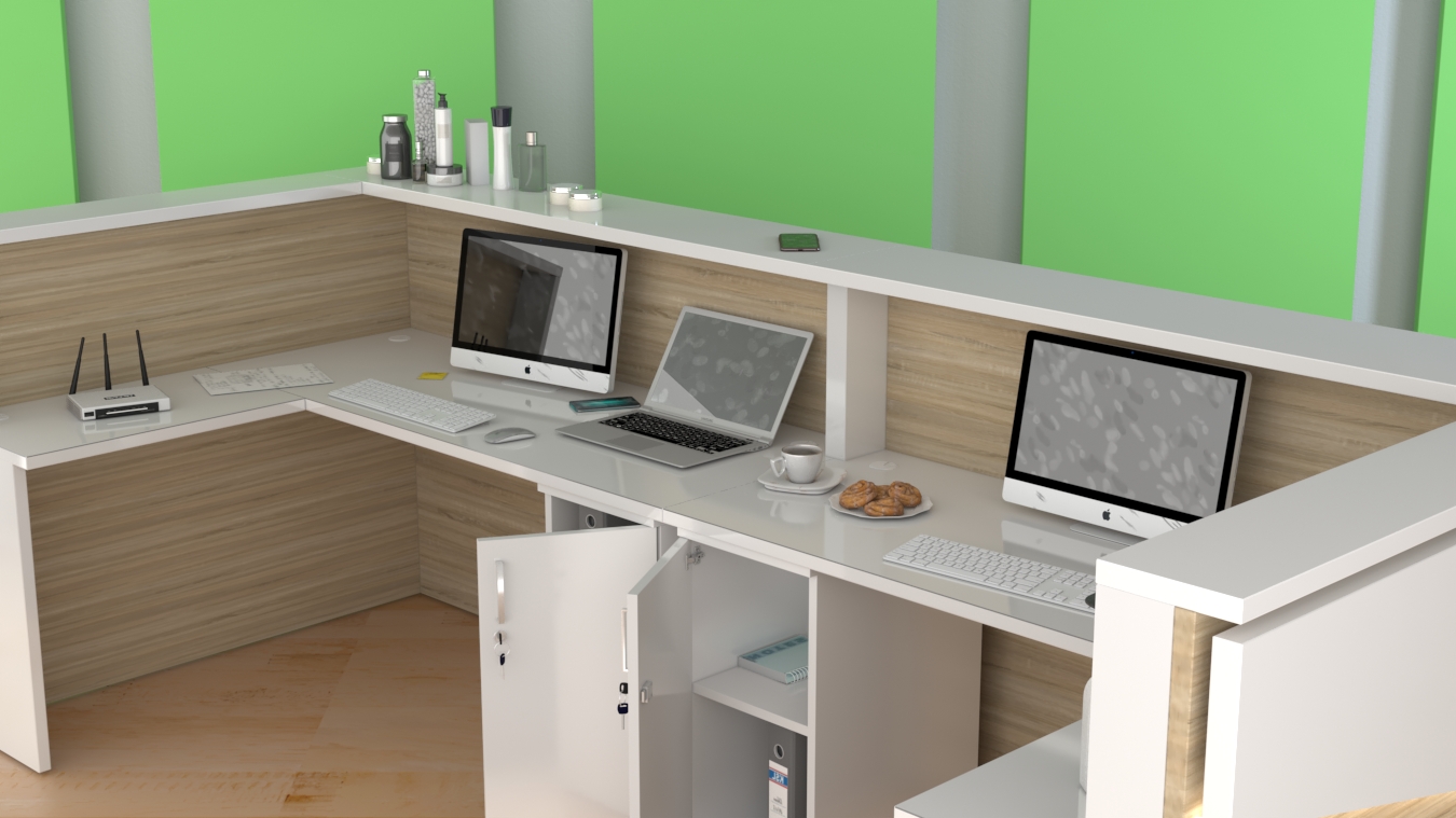 2. Praktyczność: Ergonomiczna konstrukcja ułatwia pracę recepcjonisty, umożliwiając wygodną obsługę klientów, przechowywanie dokumentów i obsługę sprzętu biurowego.