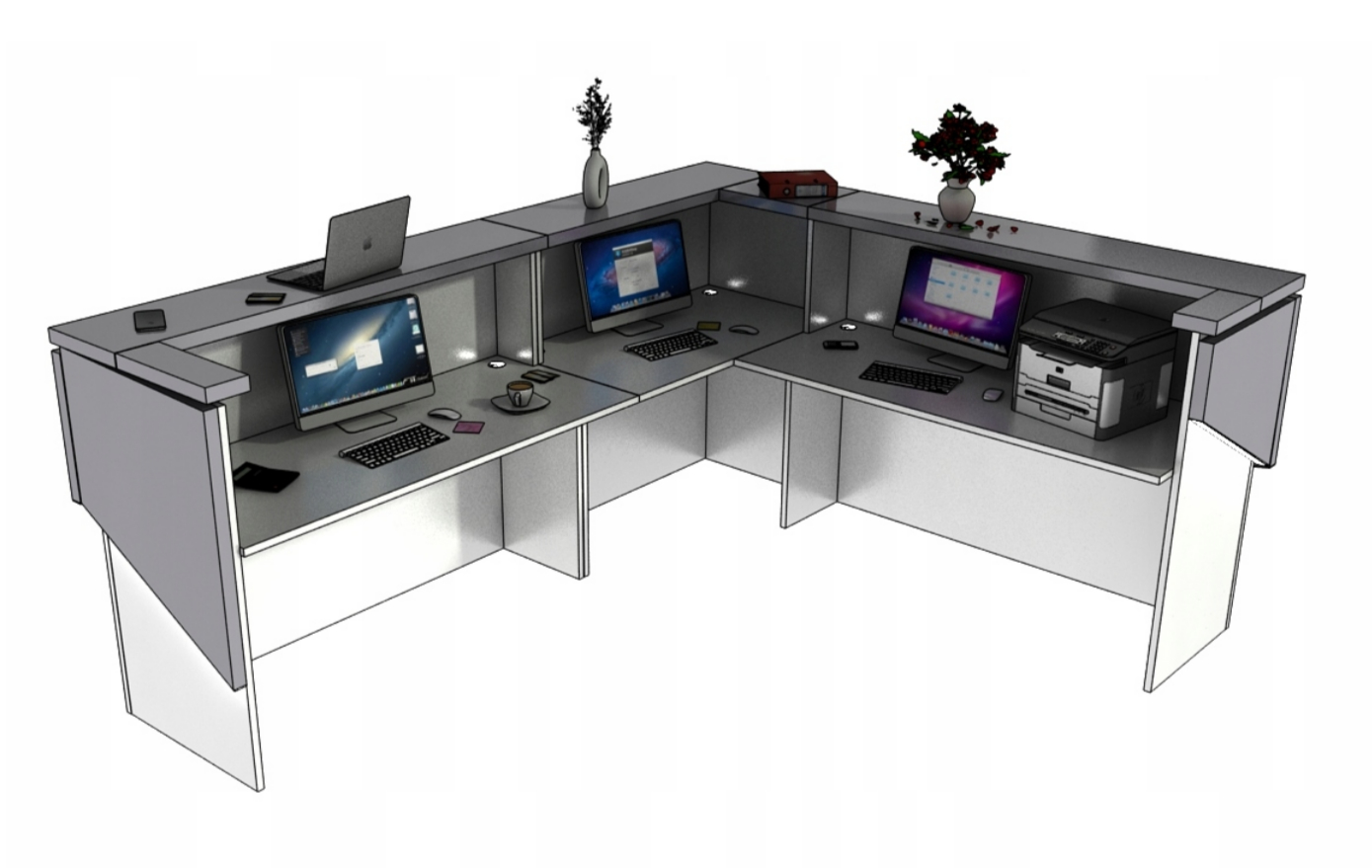 - Praktyczność: Ergonomiczna konstrukcja ułatwia pracę recepcjonisty, umożliwiając wygodną obsługę klientów, przechowywanie dokumentów i obsługę sprzętu biurowego.