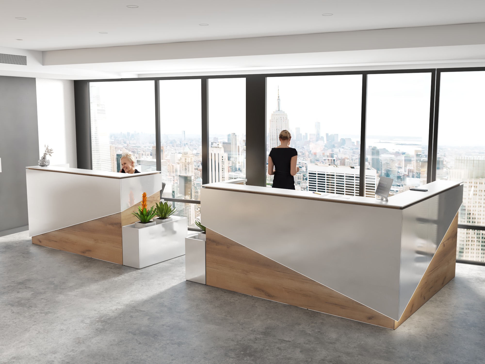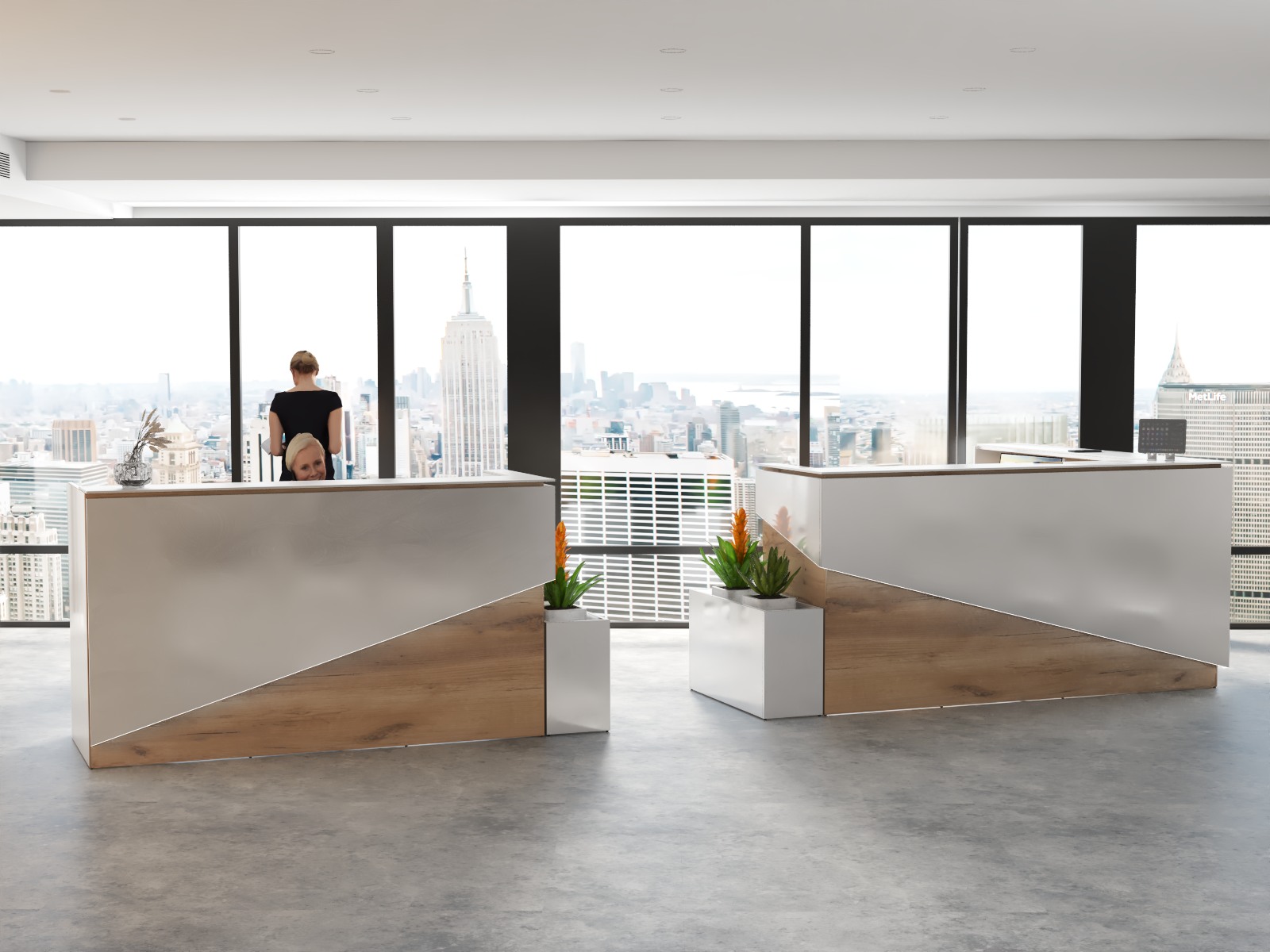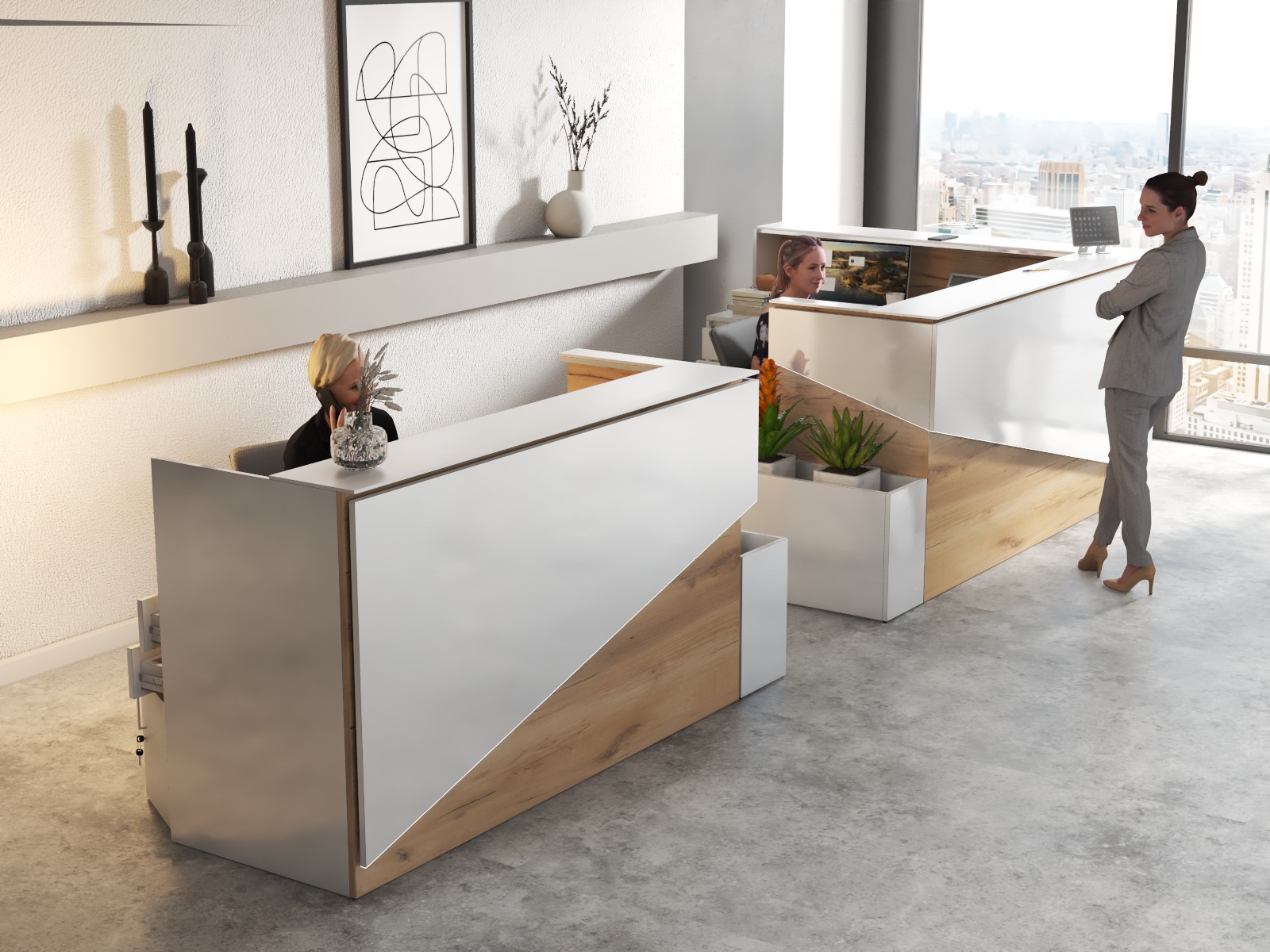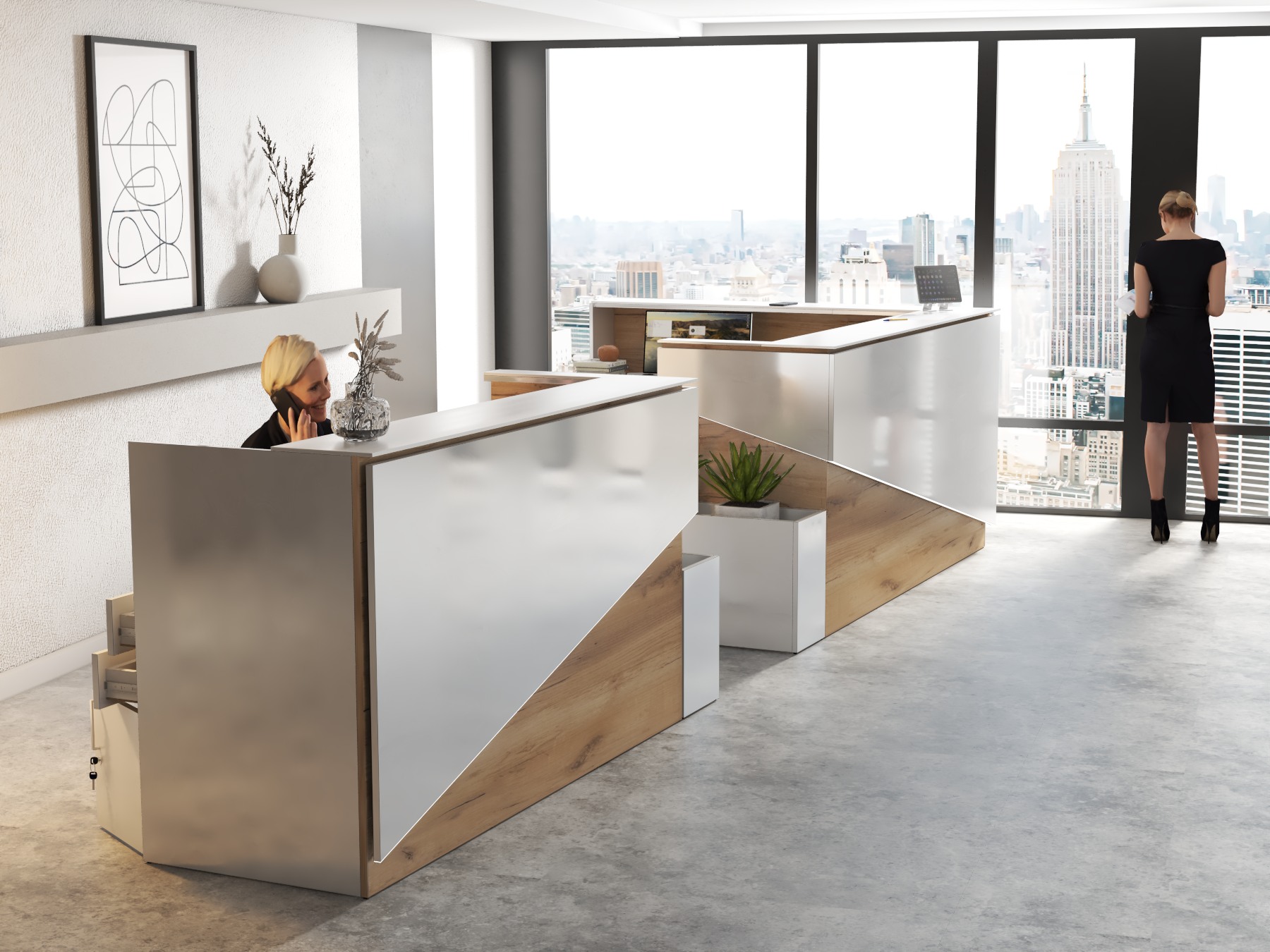2. Praktyczność: Ergonomiczna konstrukcja ułatwia pracę recepcjonisty, umożliwiając wygodną obsługę klientów, przechowywanie dokumentów i obsługę sprzętu biurowego.
