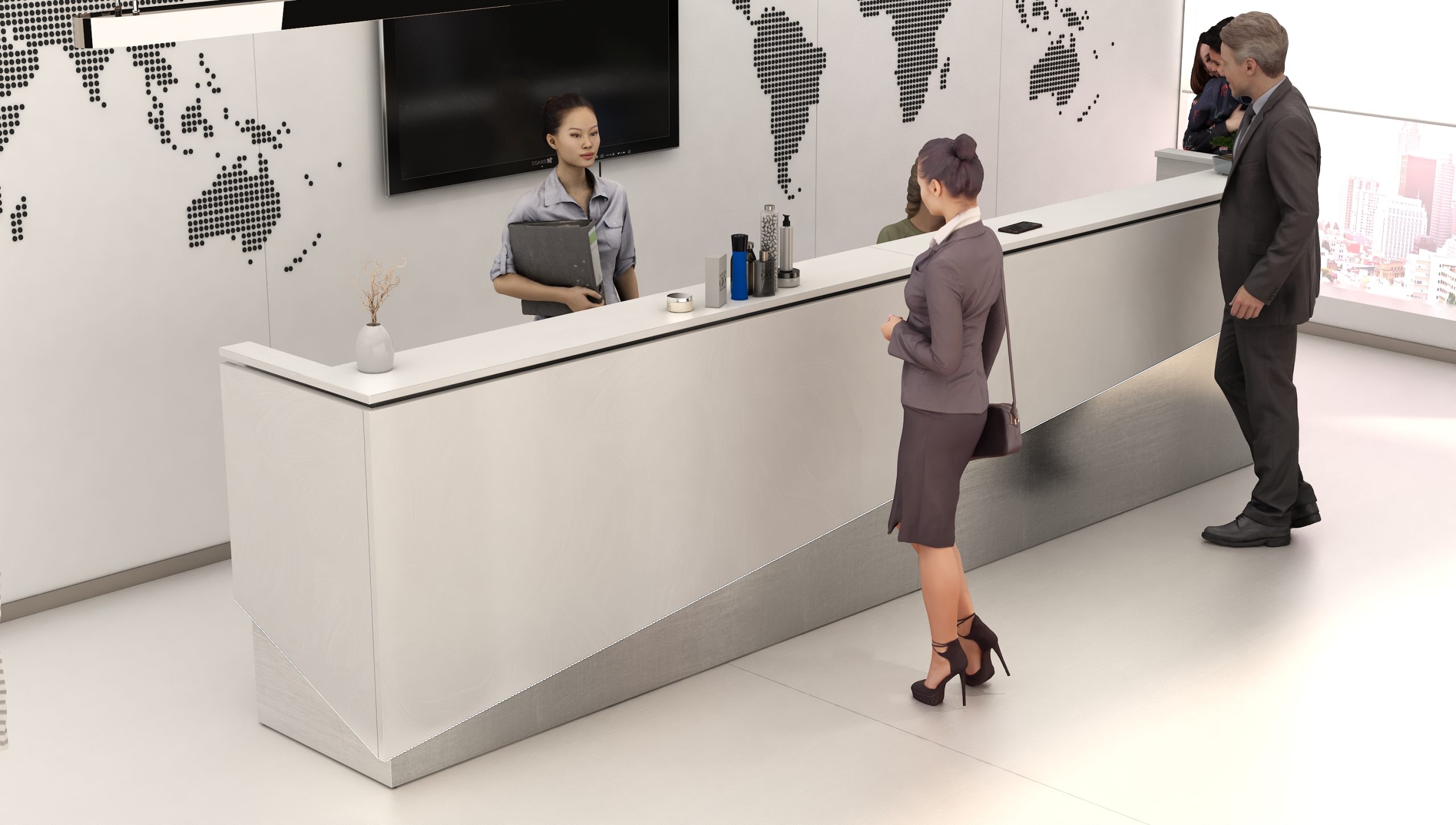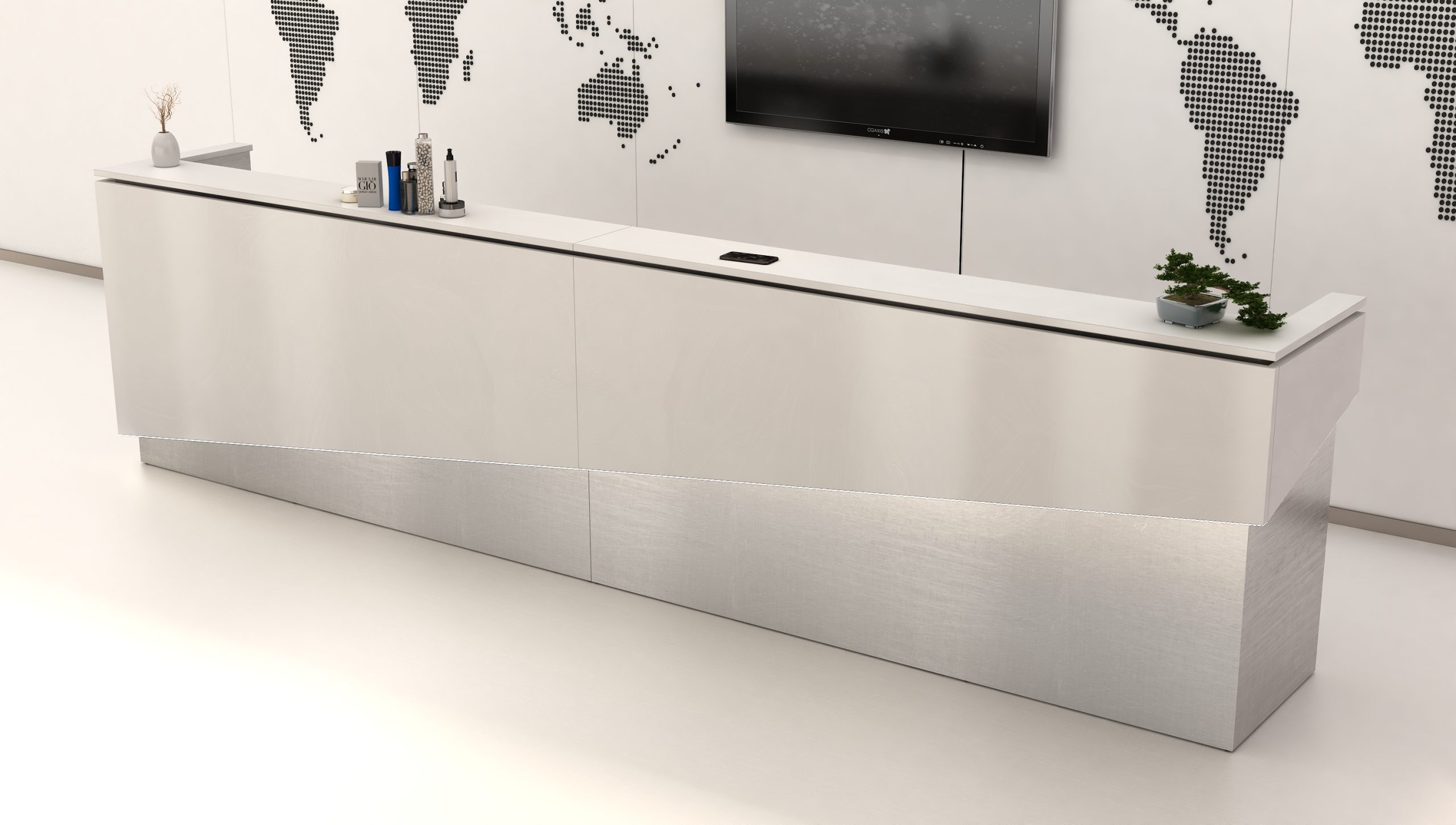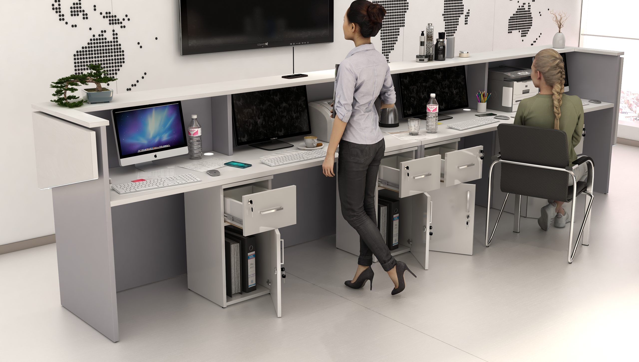 - Praktyczność: Ergonomiczna konstrukcja ułatwia pracę recepcjonisty, umożliwiając wygodną obsługę klientów, przechowywanie dokumentów i obsługę sprzętu biurowego.