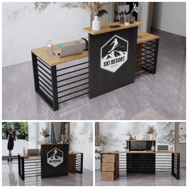 - Praktyczność: Ergonomiczna konstrukcja ułatwia pracę recepcjonisty, umożliwiając wygodną obsługę klientów, przechowywanie dokumentów i obsługę sprzętu biurowego.