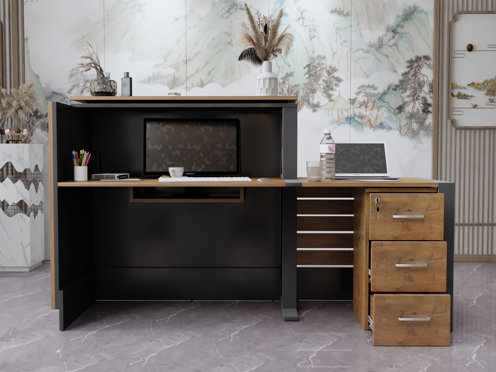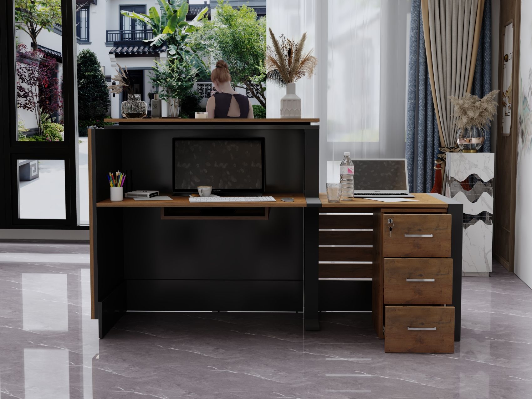 - Praktyczność: Ergonomiczna konstrukcja ułatwia pracę recepcjonisty, umożliwiając wygodną obsługę klientów, przechowywanie dokumentów i obsługę sprzętu biurowego.