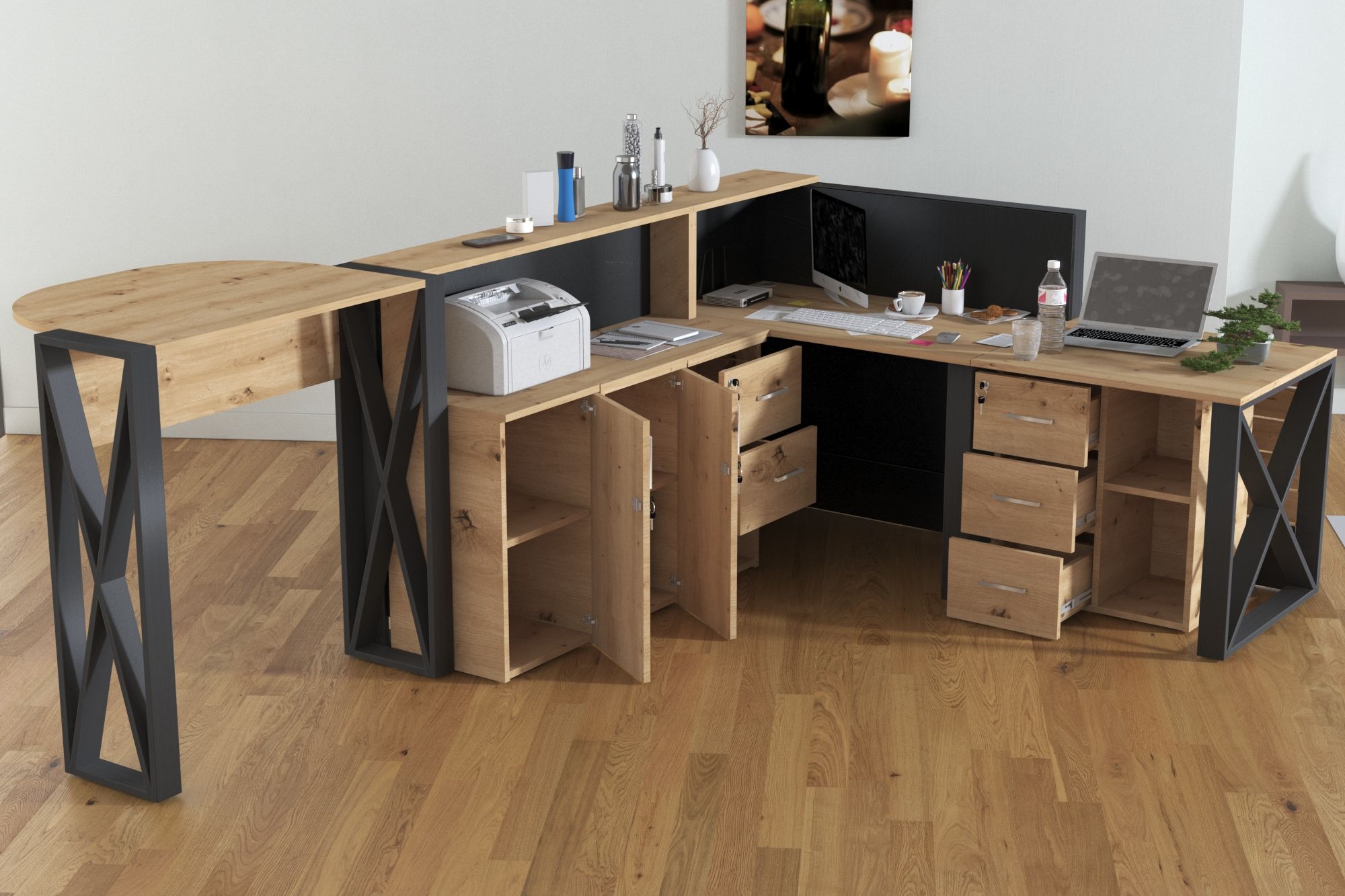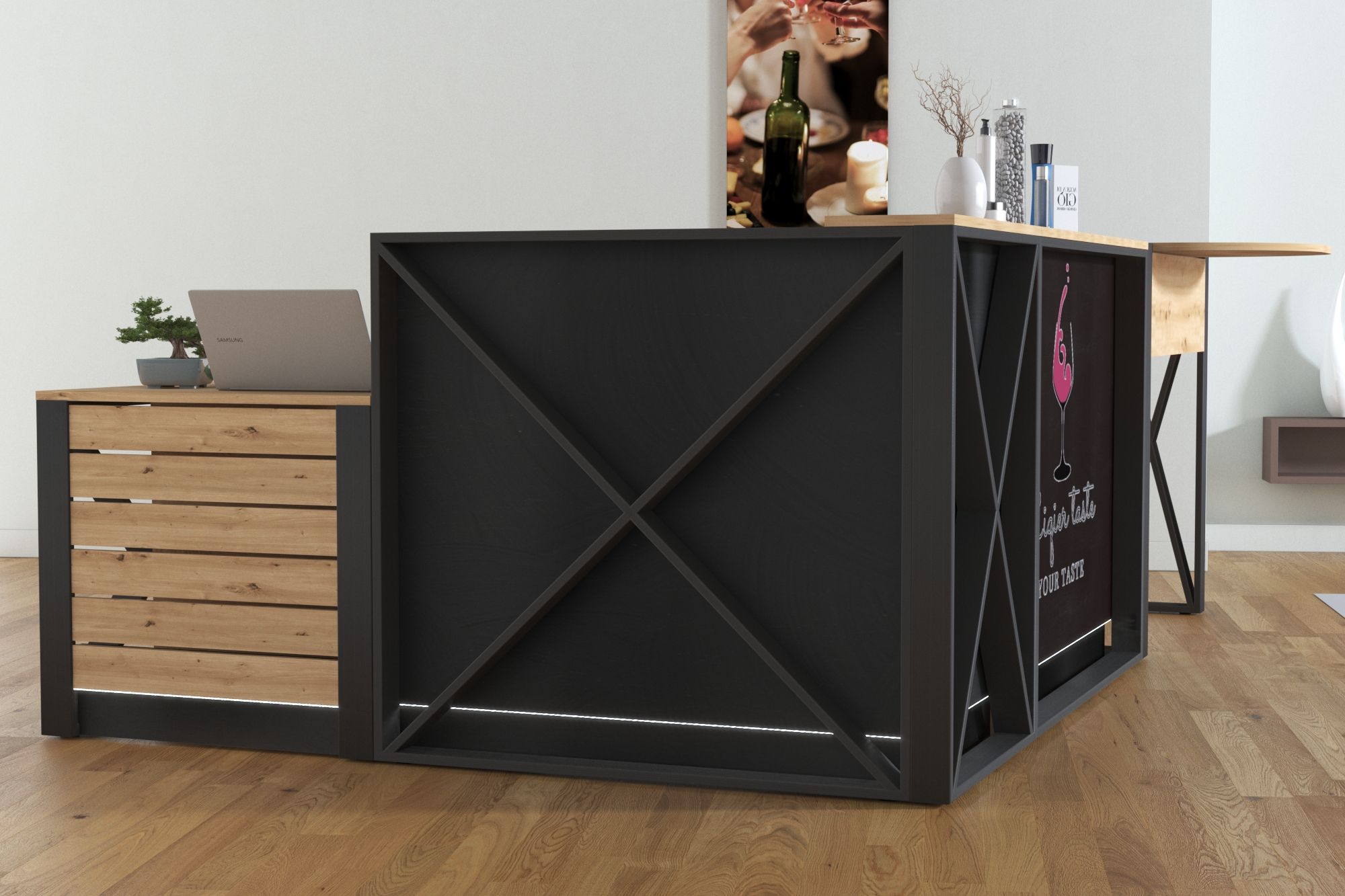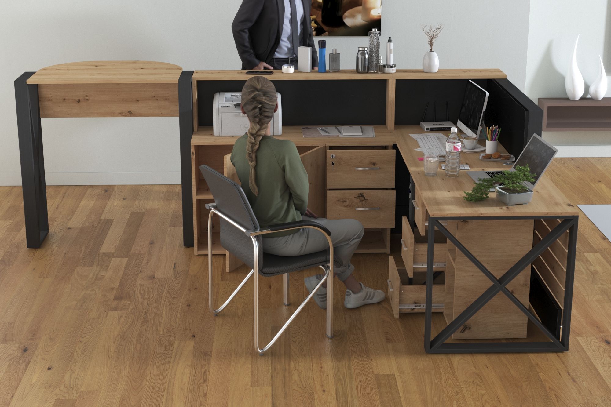 - Praktyczność: Ergonomiczna konstrukcja ułatwia pracę recepcjonisty, umożliwiając wygodną obsługę klientów, przechowywanie dokumentów i obsługę sprzętu biurowego.