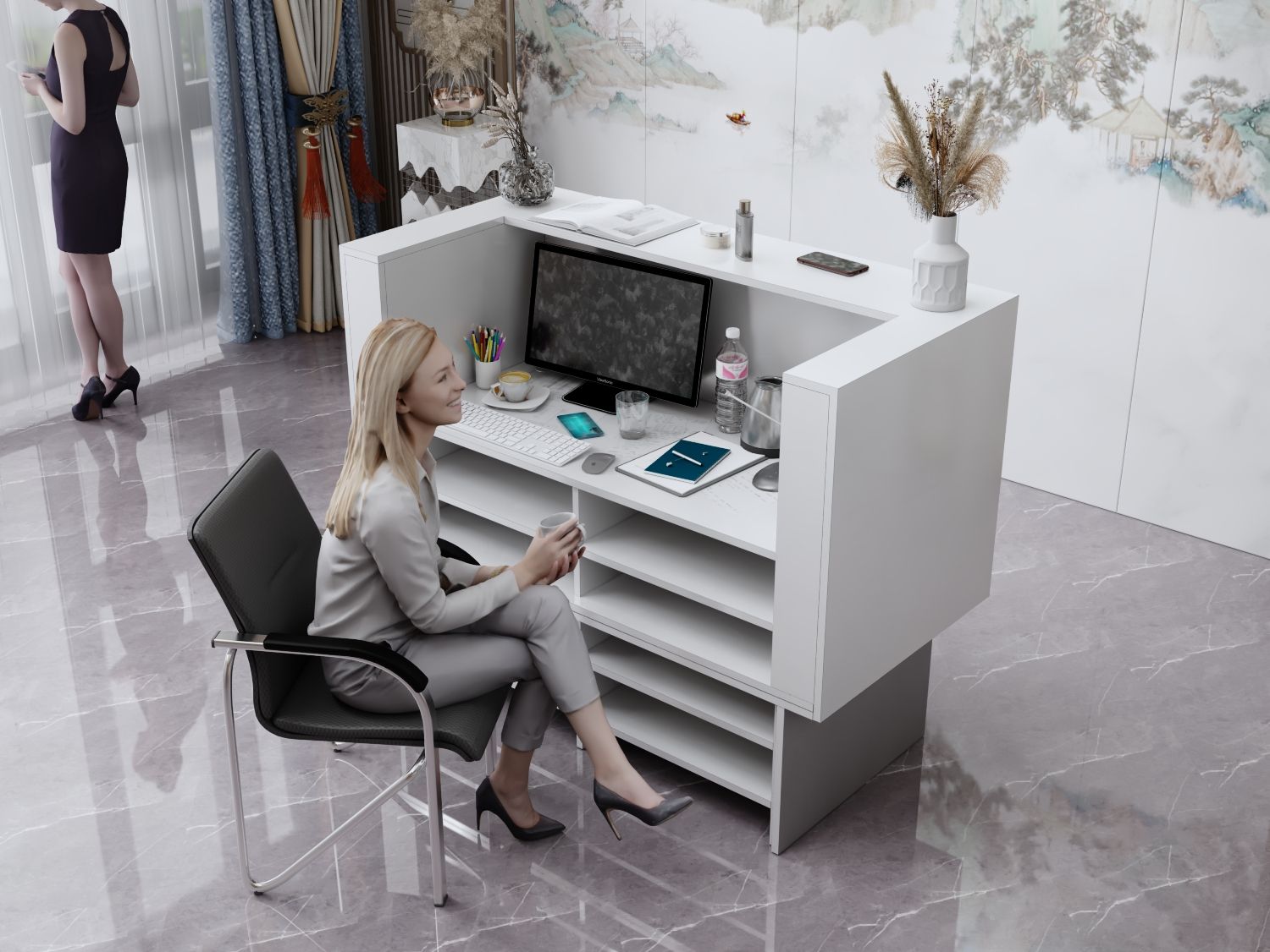 - Praktyczność: Ergonomiczna konstrukcja ułatwia pracę recepcjonisty, umożliwiając wygodną obsługę klientów, przechowywanie dokumentów i obsługę sprzętu biurowego.