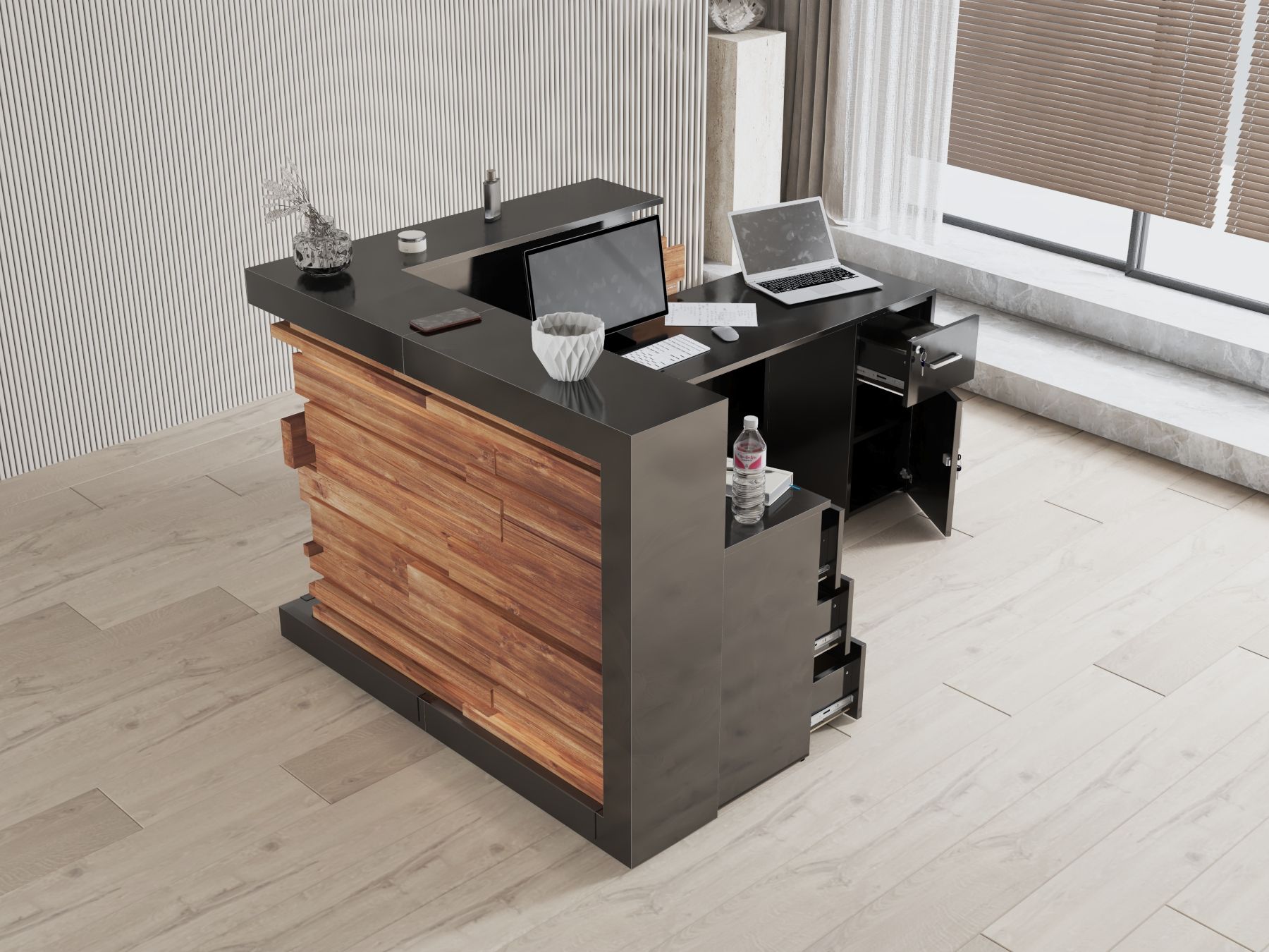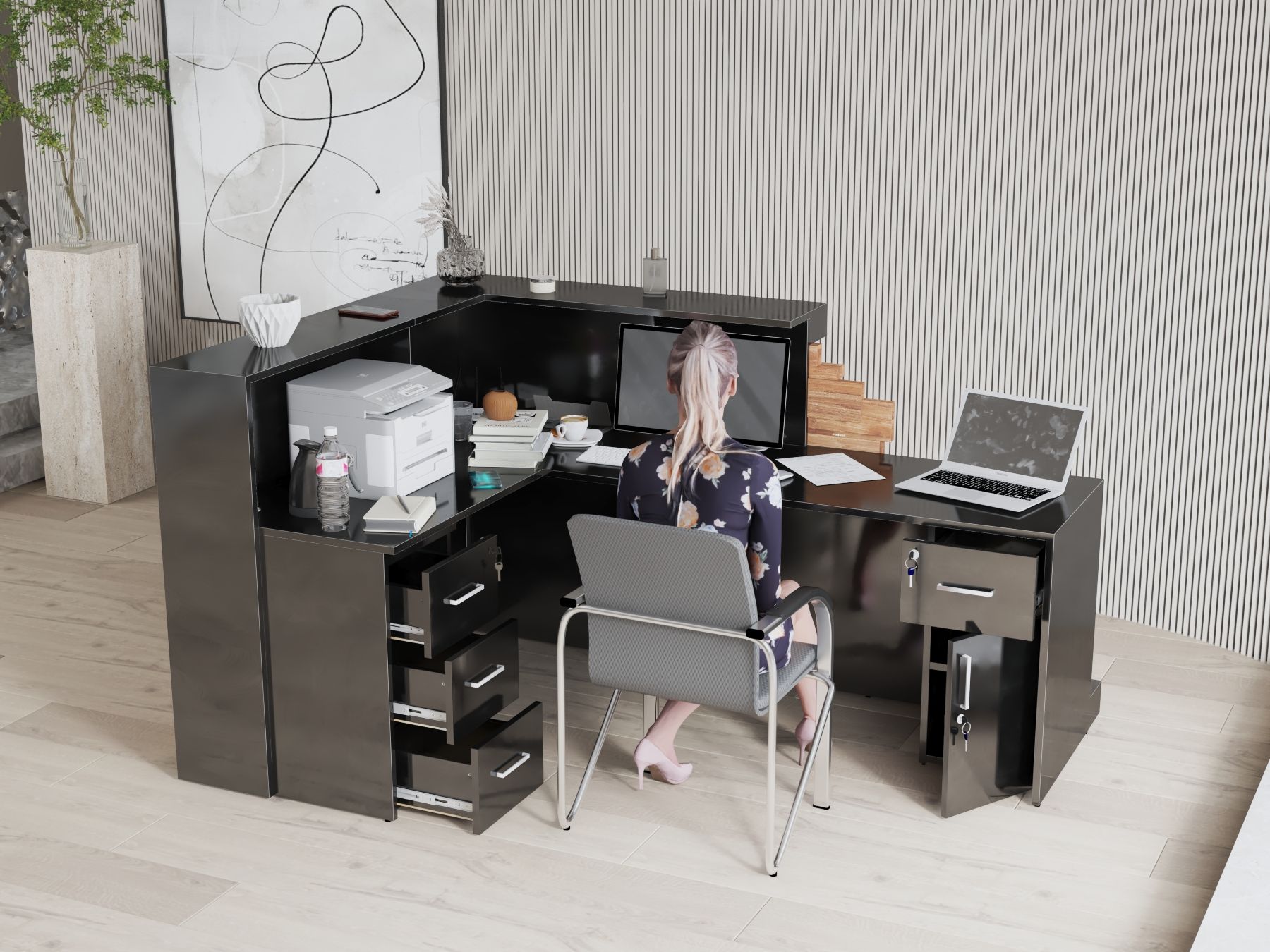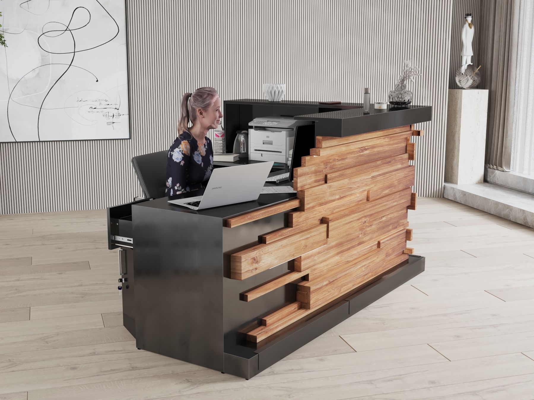 - Praktyczność: Ergonomiczna konstrukcja ułatwia pracę recepcjonisty, umożliwiając wygodną obsługę klientów, przechowywanie dokumentów i obsługę sprzętu biurowego.