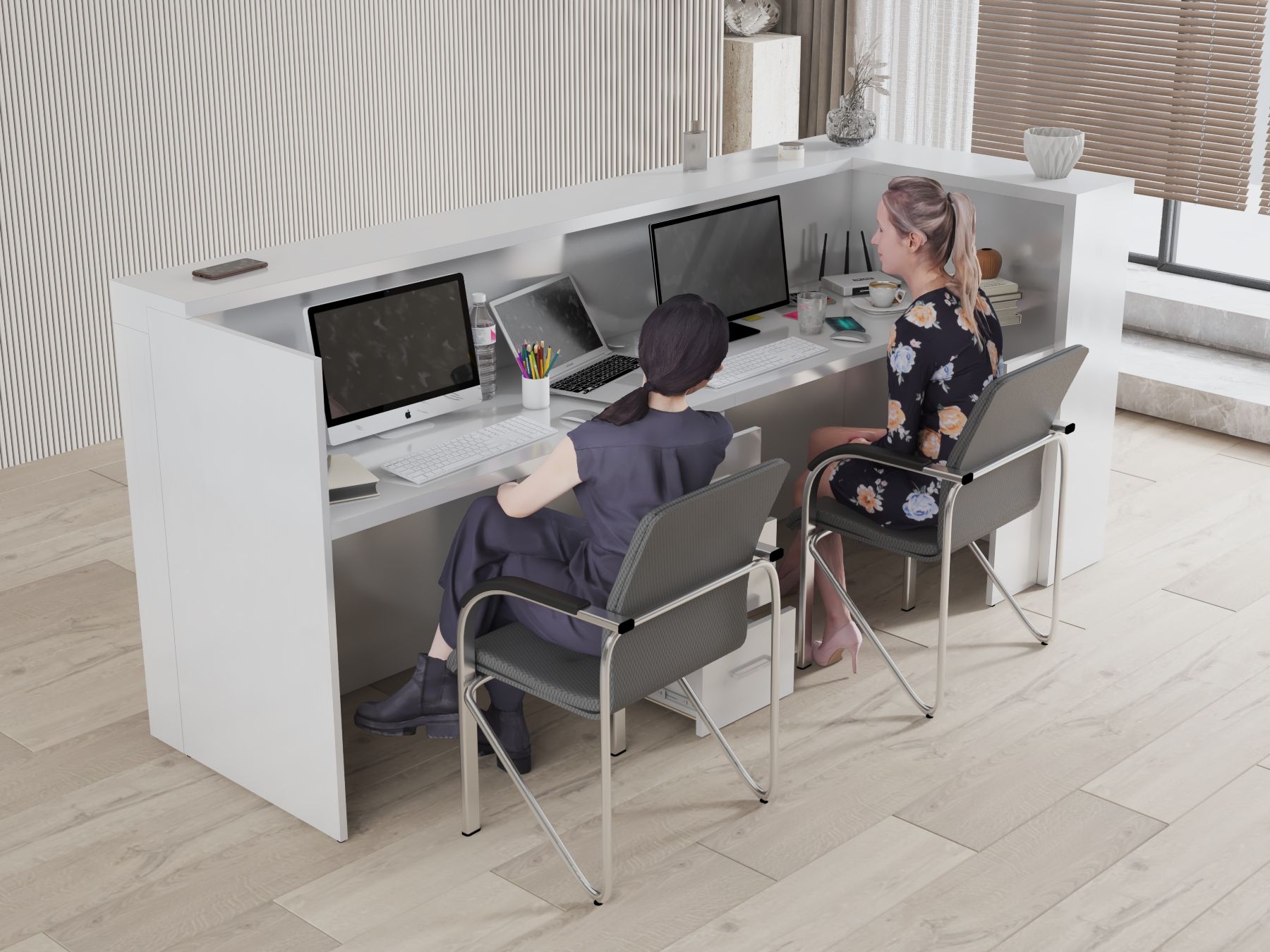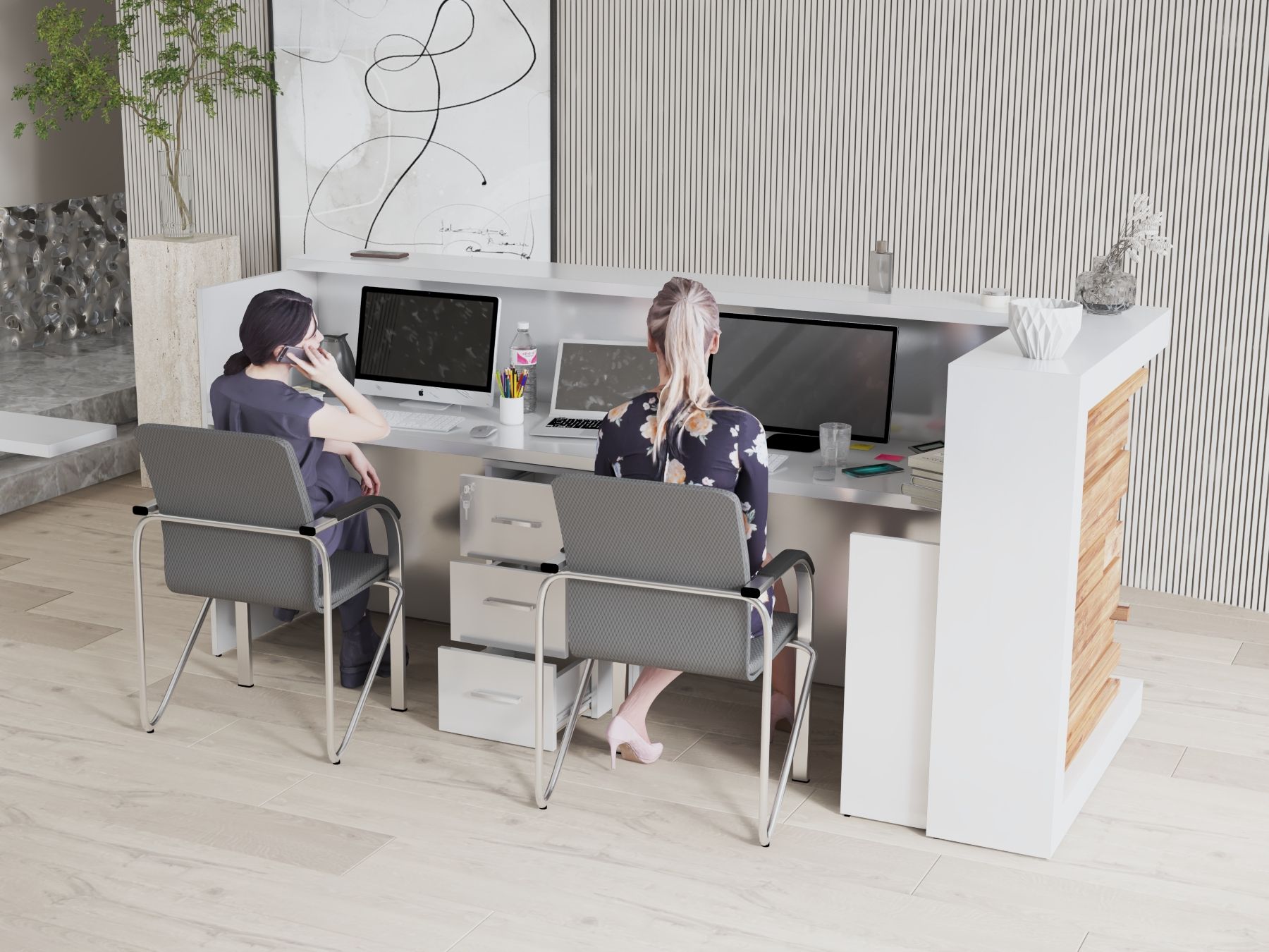- Praktyczność: Ergonomiczna konstrukcja ułatwia pracę recepcjonisty, umożliwiając wygodną obsługę klientów, przechowywanie dokumentów i obsługę sprzętu biurowego.