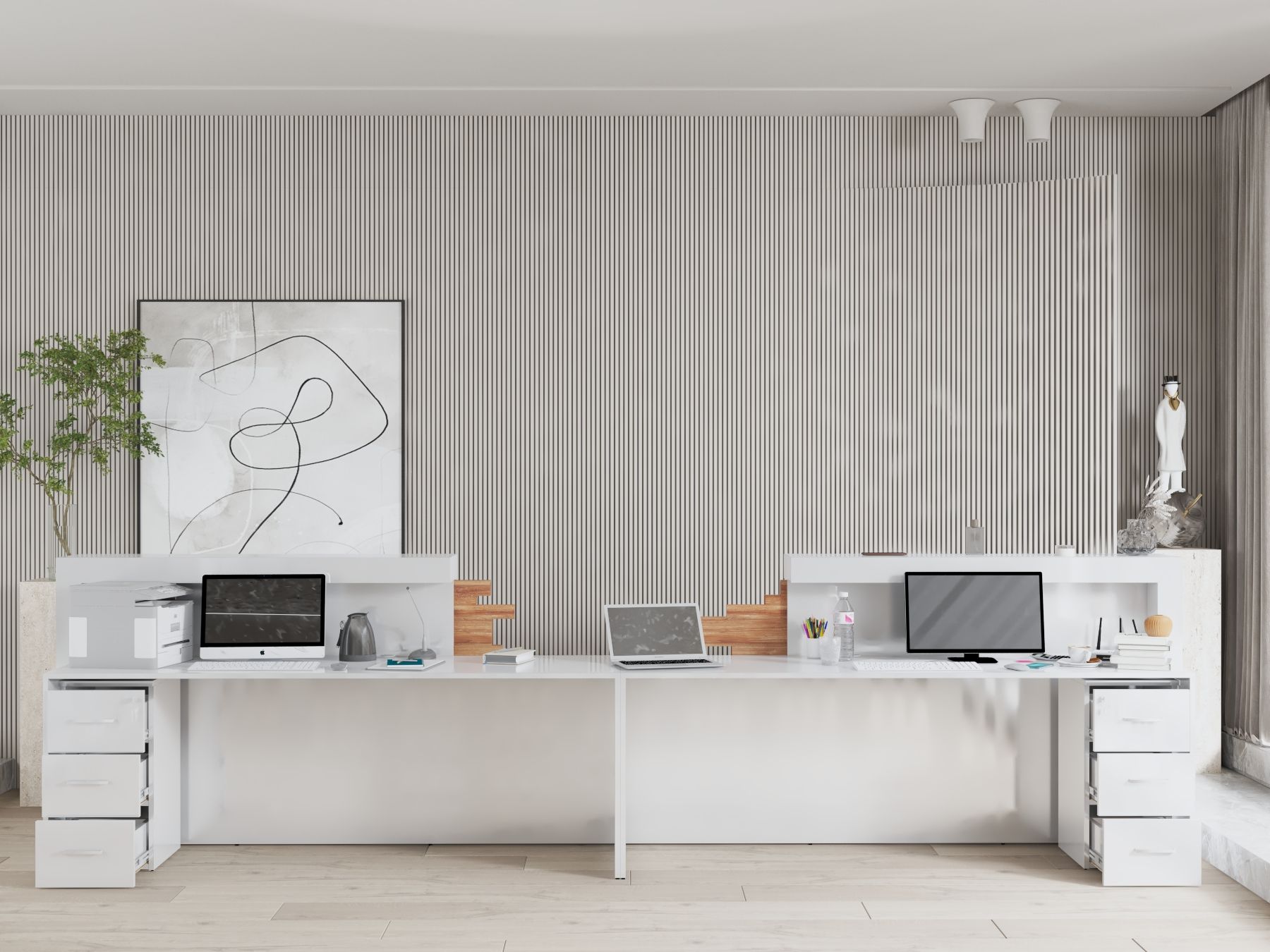 - Modułowe lady: Umożliwiają dopasowanie układu do przestrzeni, co sprawdza się w biurach o nieregularnym kształcie.
