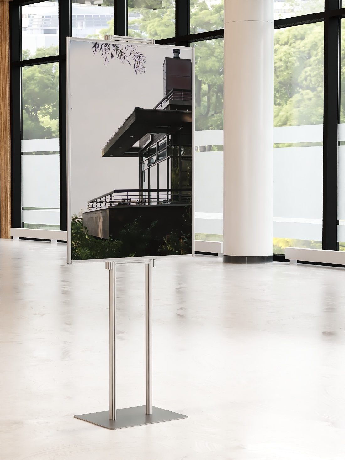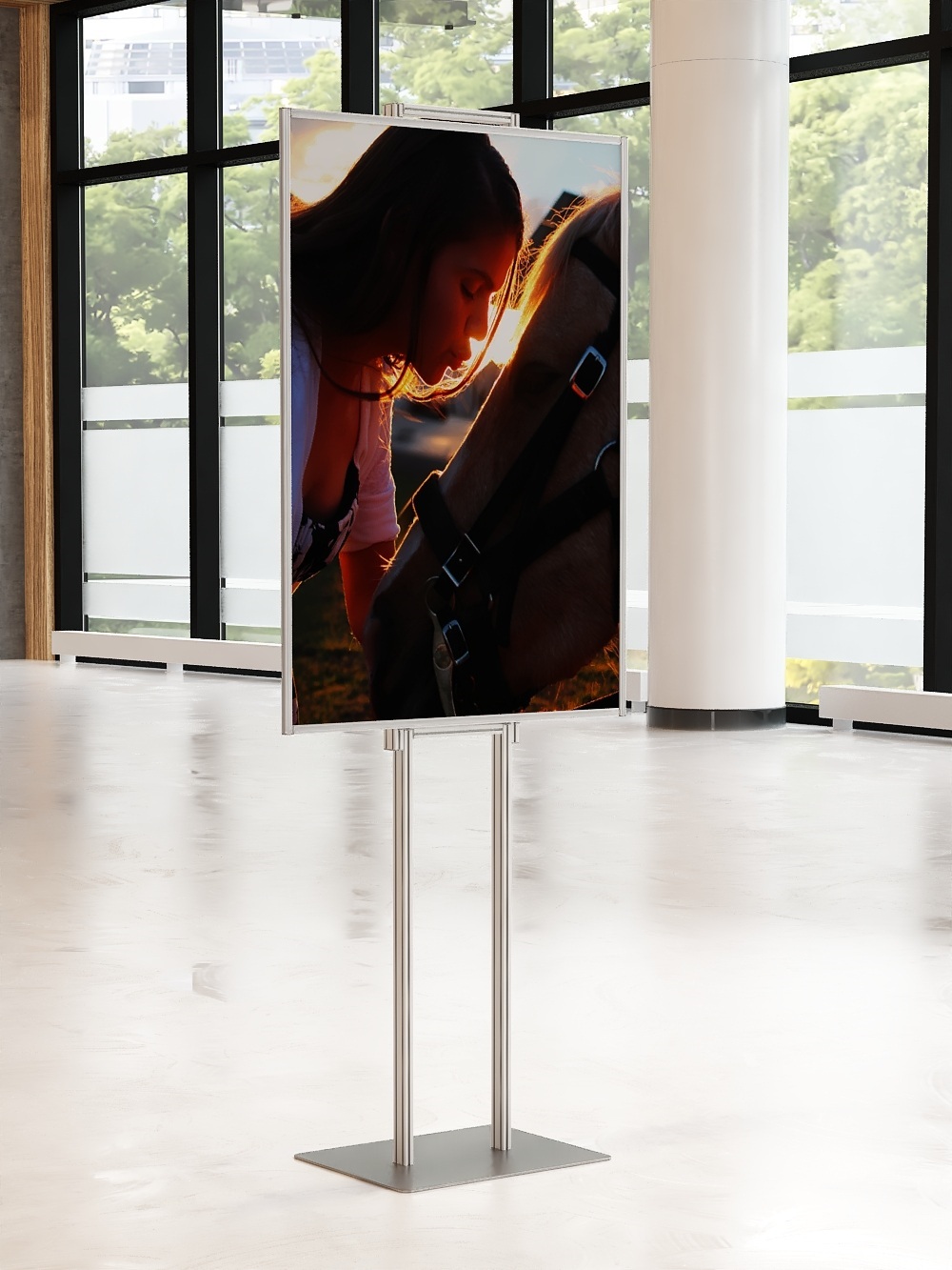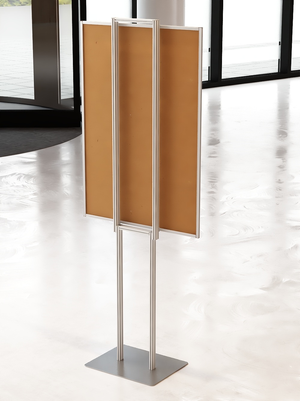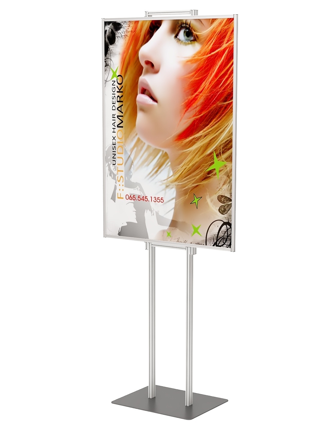To stabilne uniwersalne rozwiązanie , jest inteligentnie zaprojektowana aby dzięki modułowej konstrukcji, przypinać i odpinać ramki plakatowe różnego rodzaju do stelaża.