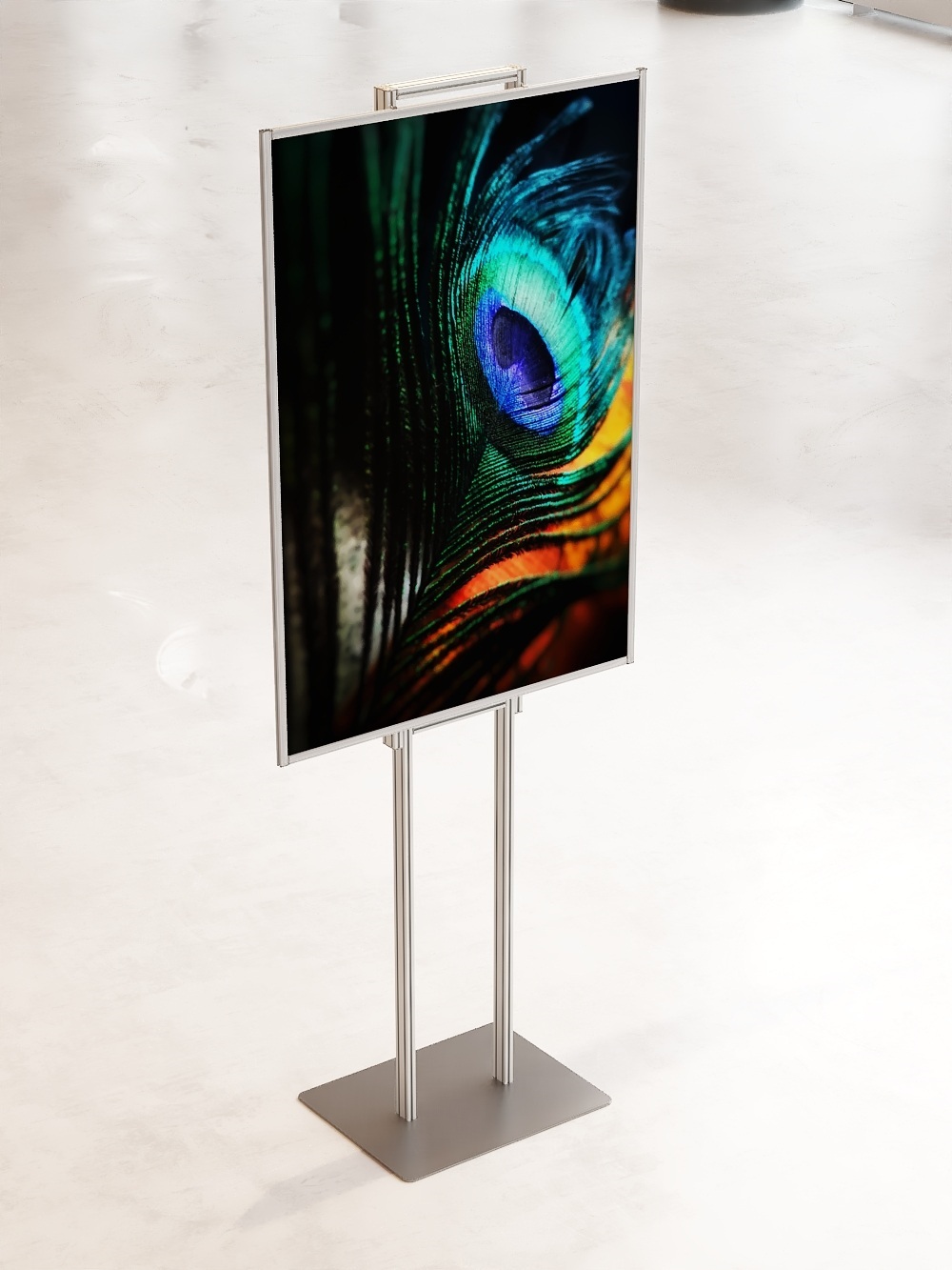 Można także zamontować Toper lub ramkę kieszenie co zmieni “stojak na plakat” na stojak na ulotki.