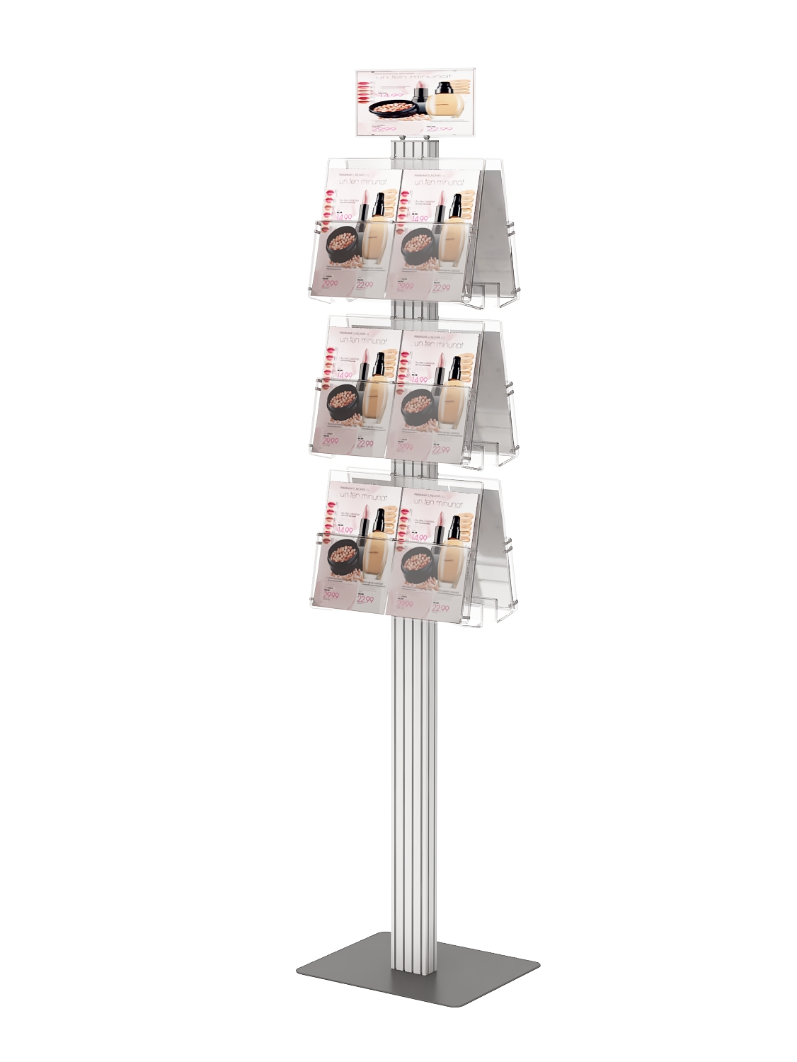 Stojak reklamowy na ulotki z anodowanego aluminium.