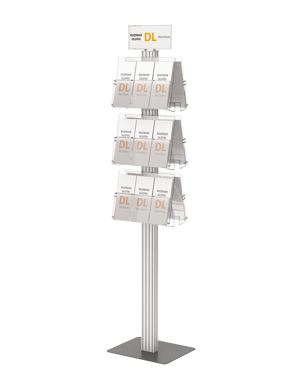 Tabliczka DL posiada zaczepy trzymające ulotkę.
