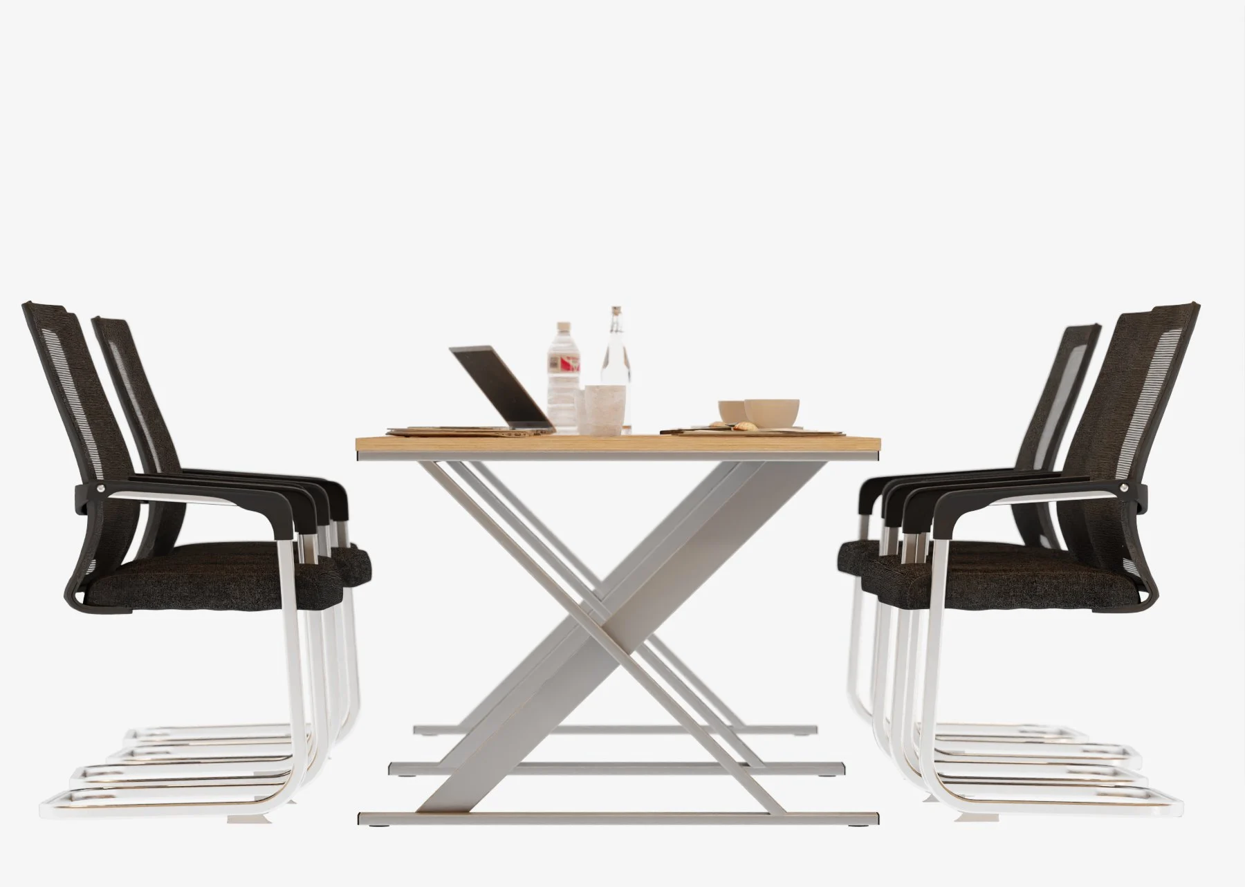 Stół konferencyjny Horizon wyróżnia się nowoczesnym, prostym wzornictwem – prostokątny blat spoczywa na charakterystycznych spawanych nogach z profili metalowych malowanych proszkowo. Dzięki temu konstrukcja jest bardzo stabilna i trwała.