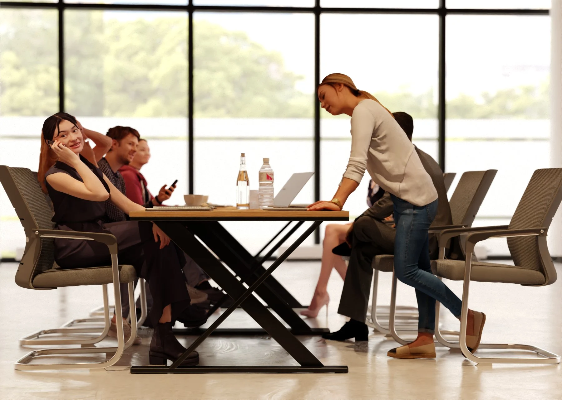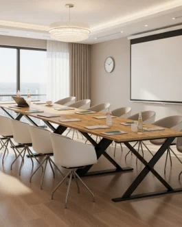 Wysokość 75 cm gwarantuje wygodę podczas długich spotkań i pracy. Opcjonalnie stół można wyposażyć w mediaporty oraz praktyczne kanały / organizery kablowe – dzięki nim blat pozostaje zawsze schludny, a dostęp do prądu i multimediów jest szybki i dyskretny.