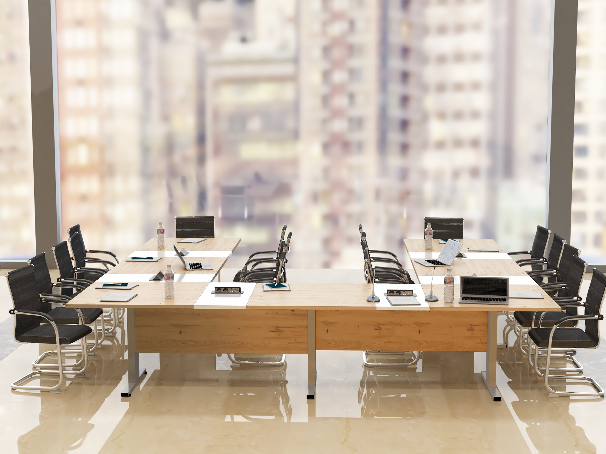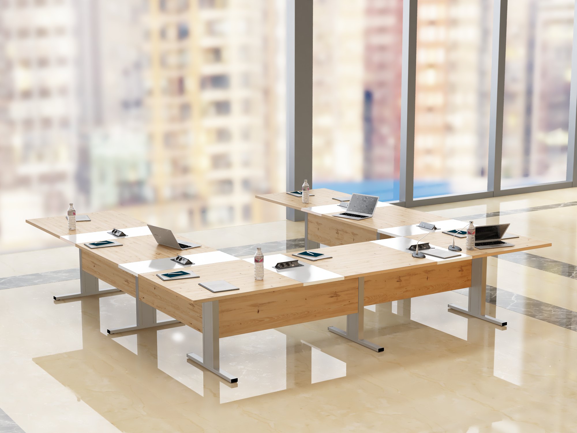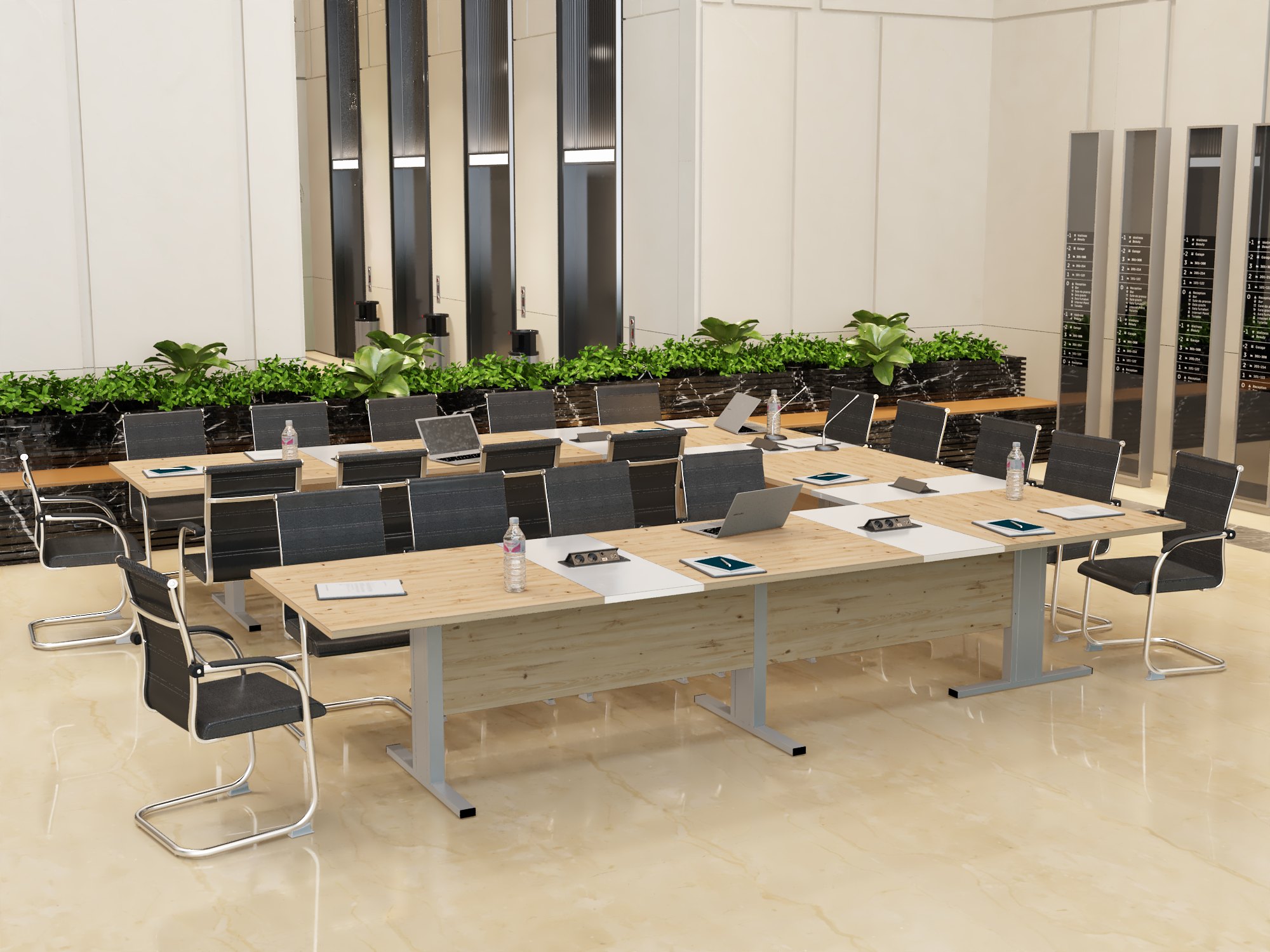 Stół konferencyjny “Boston” to rozwiązanie dla różnych przestrzeni biurowych, łączące elegancję i funkcjonalność. Jego charakterystyczny kształt odwróconej litery T nadaje mu nietuzinkowy i przyciągający wzrok wygląd, co czyni go wyróżniającym elementem każdej sali konferencyjnej.