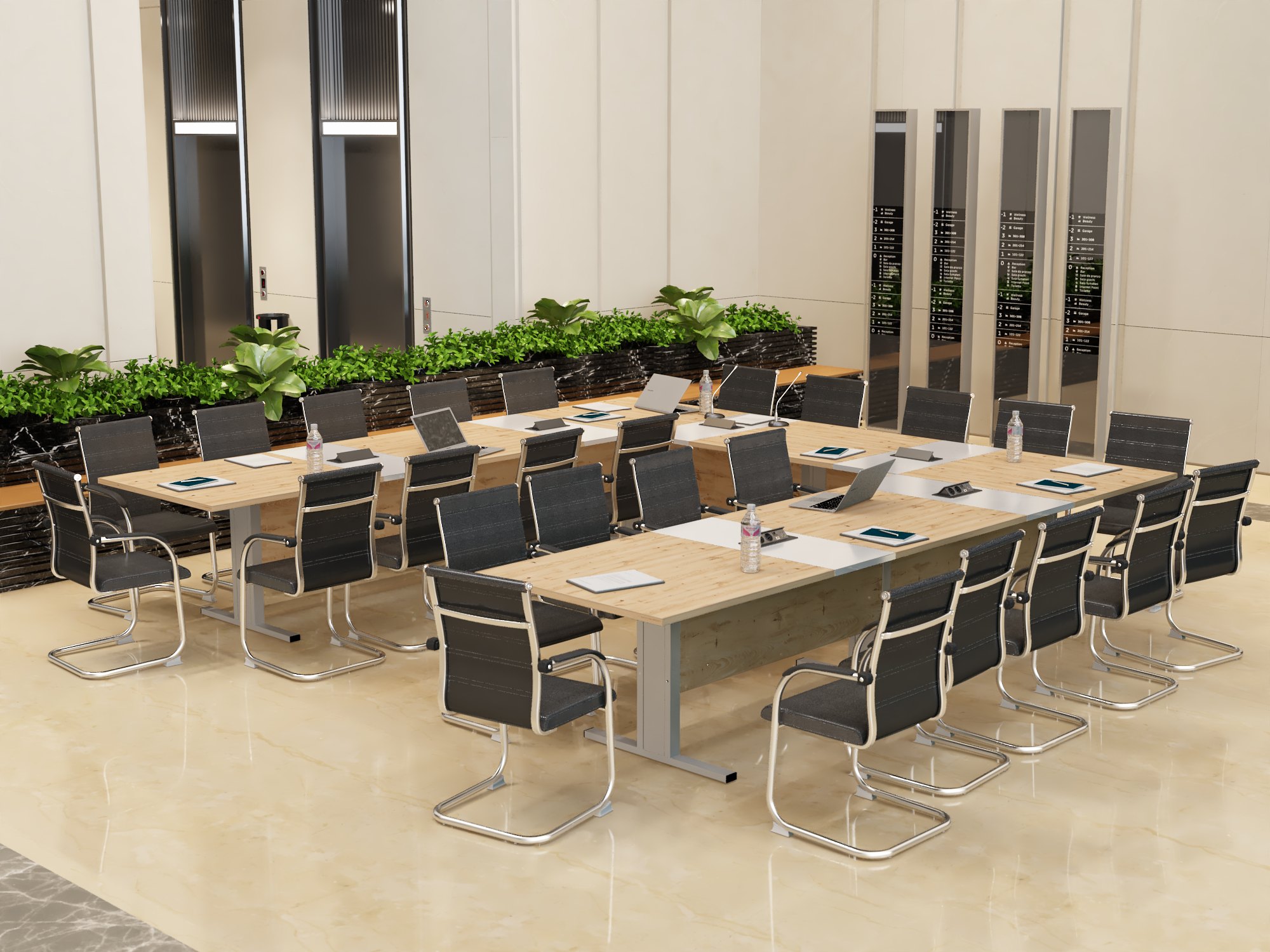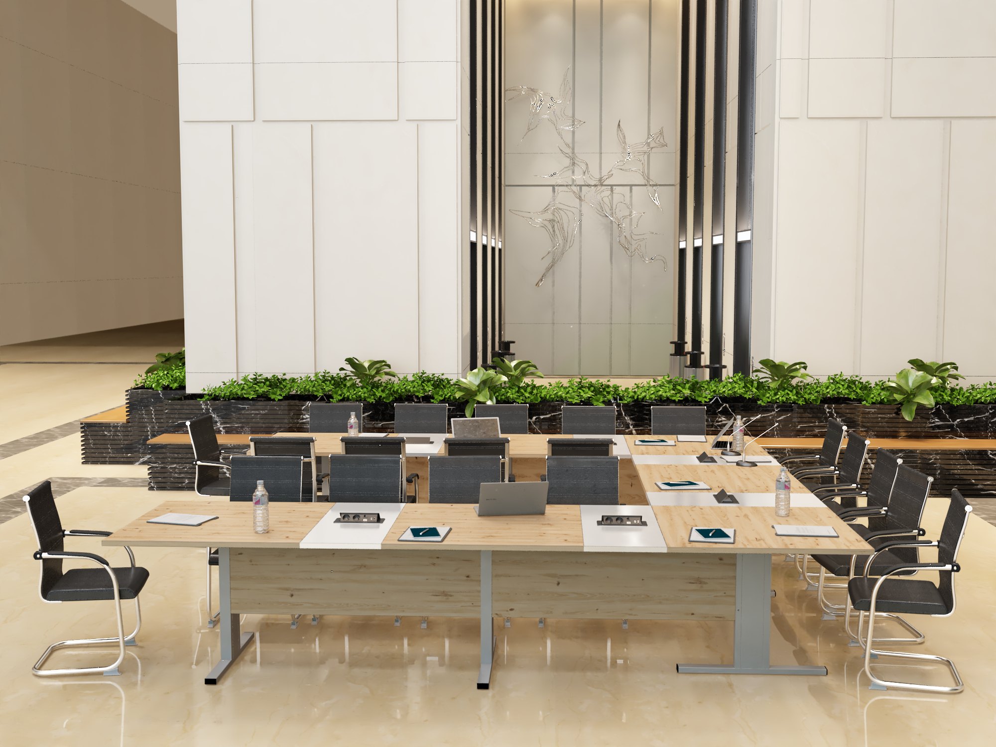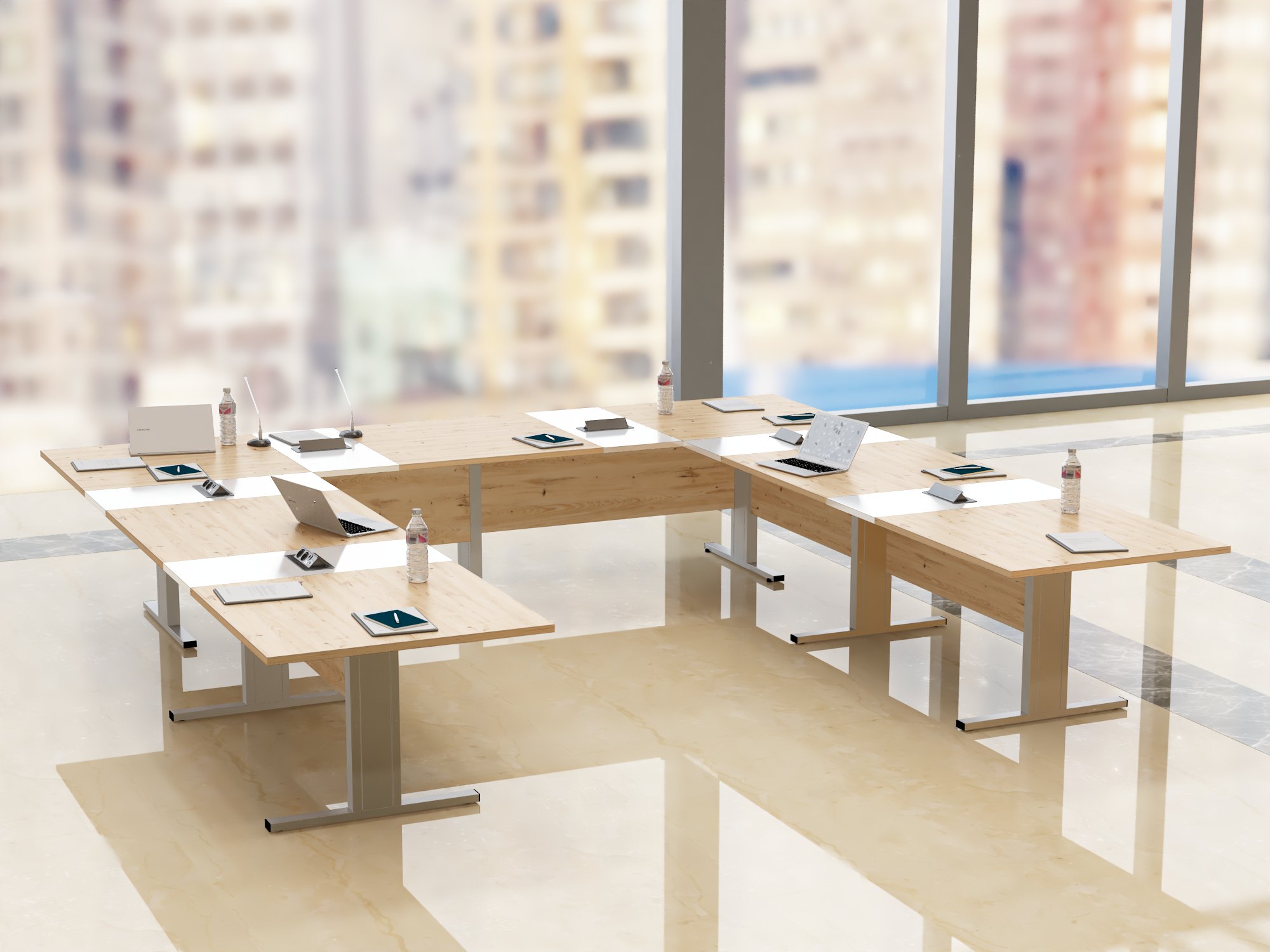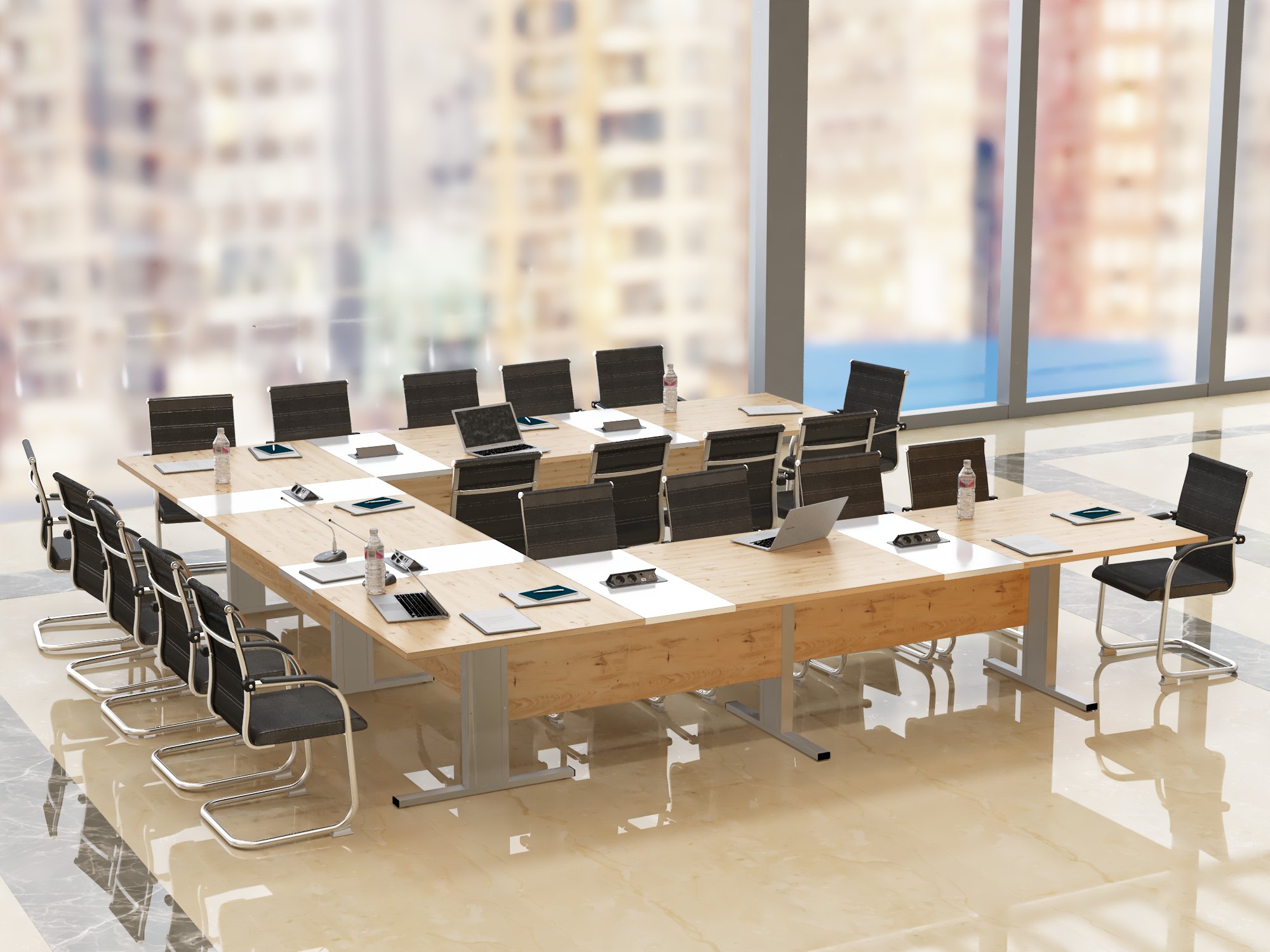 Stół konferencyjny “Boston” to rozwiązanie dla różnych przestrzeni biurowych, łączące elegancję i funkcjonalność. Jego charakterystyczny kształt odwróconej litery T nadaje mu nietuzinkowy i przyciągający wzrok wygląd, co czyni go wyróżniającym elementem każdej sali konferencyjnej.