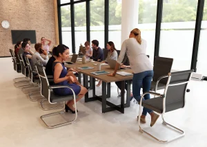 Standardowa, ergonomiczna wysokość naszych stołów konferencyjnych wynosi 75 cm i jest dostosowana do użycia z większością krzeseł i foteli biurowych. Oczywiście możemy każdy wymiar.