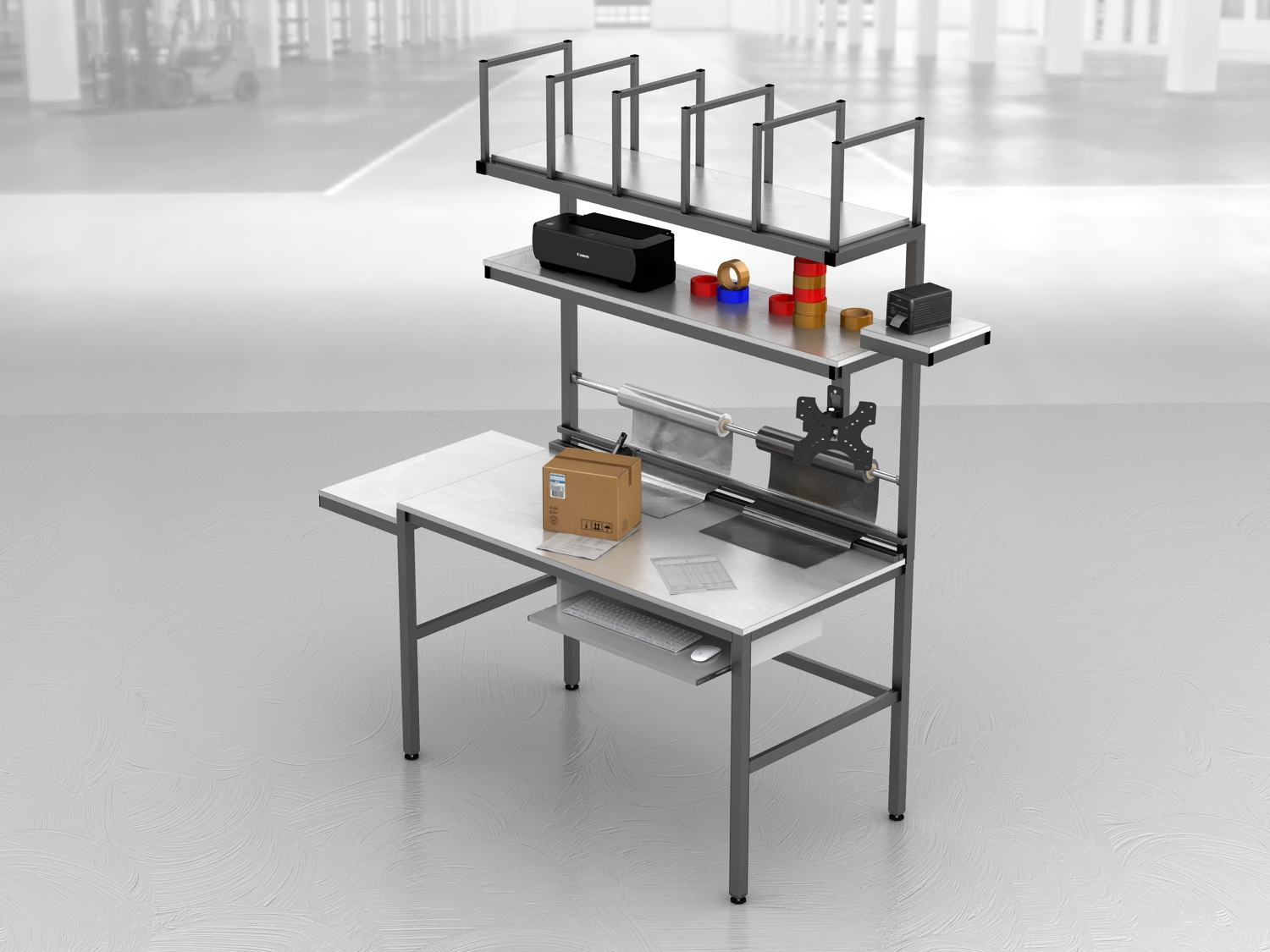 Stół pakowy to niezastąpione rozwiązanie dla firm poszukujących dobrego, ergonomicznego i funkcjonalnego stanowiska. Nasze stoły pakowe, produkowane są w Polsce, wyróżniają się spawaną solidną konstrukcją, podzieloną dwie części – stół oraz nadstawkę w celu ułatwienia transportu.