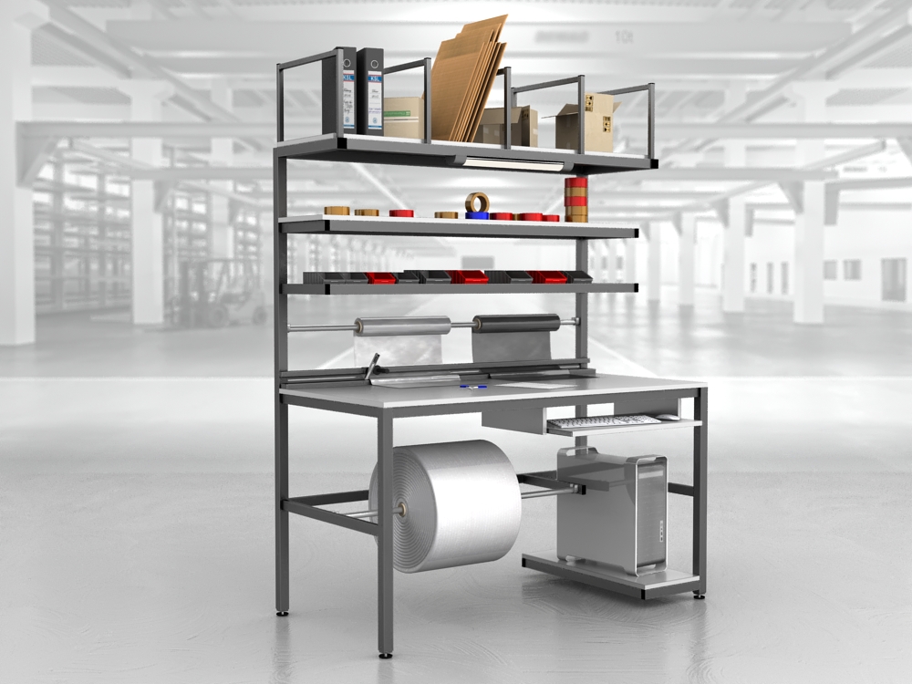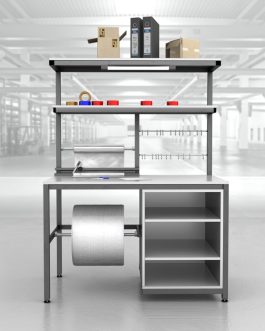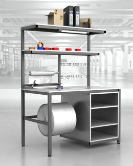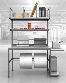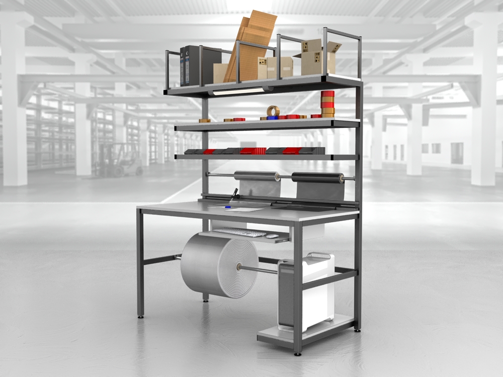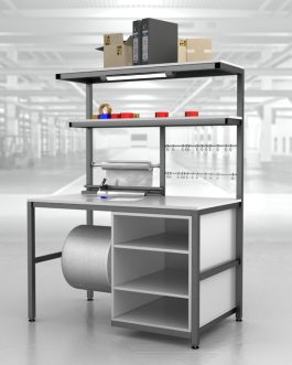 Stół pakowy to niezastąpione rozwiązanie dla firm poszukujących dobrego, ergonomicznego i funkcjonalnego stanowiska. Nasze stoły pakowe, produkowane są w Polsce, wyróżniają się spawaną solidną konstrukcją, podzieloną dwie części – stół oraz nadstawkę w celu ułatwienia transportu.