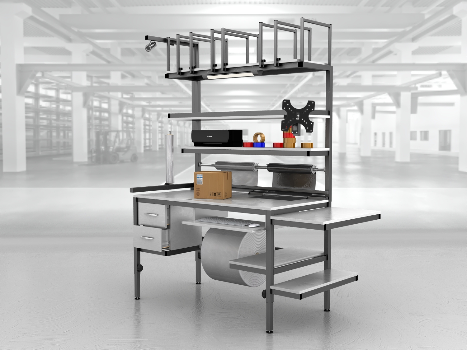 Idealnie sprawdzą się jako stół magazynowy do pakowania w halach produkcyjnych, magazynach, firmach e-commerce czy małych przedsiębiorstwach.
