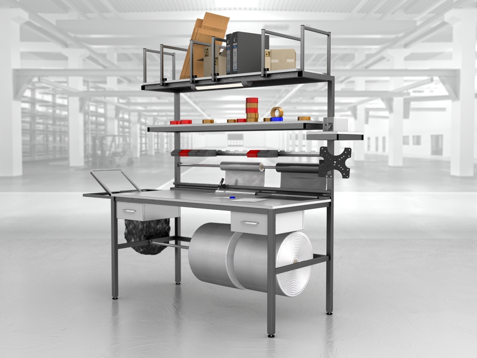 Stół do kompletowania zamówień to niezastąpione rozwiązanie dla firm poszukujących dobrego, ergonomicznego i funkcjonalnego stanowiska. Nasze stoły pakowe, produkowane są w Polsce, wyróżniają się spawaną solidną konstrukcją, podzieloną dwie części – stół oraz nadstawkę w celu ułatwienia transportu.