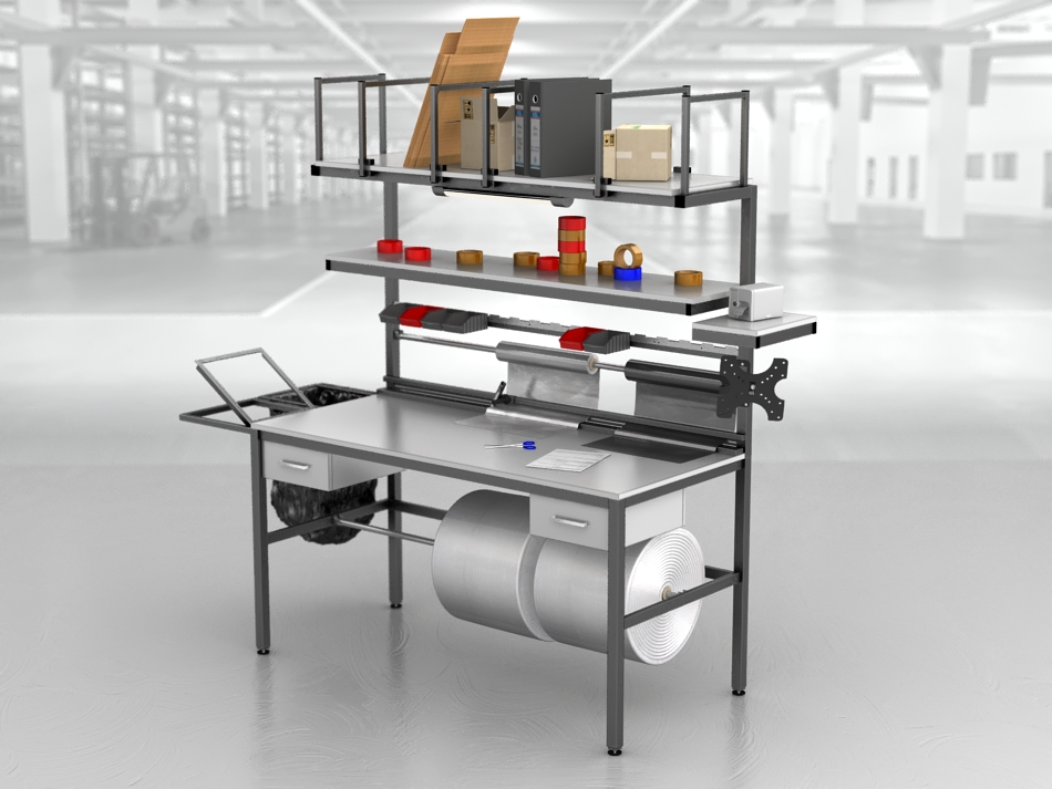 – możliwa lekka modyfikacja wymiarów z tej oferty wysokość półek itp..______________________________________________________Zalety naszych stołów:Dowolna zabudowa półki , oświetlenie , szafki , szuflady , przeloty kablowe , stopki , kółka, przesuwane przegrody, nóż do foli (do wyceny) Przed wykonaniem robimy wizualizacje 3D. Realizujemy też systemy stołów razem z stołami do rolowania ,wózkami na kartony i na papier.