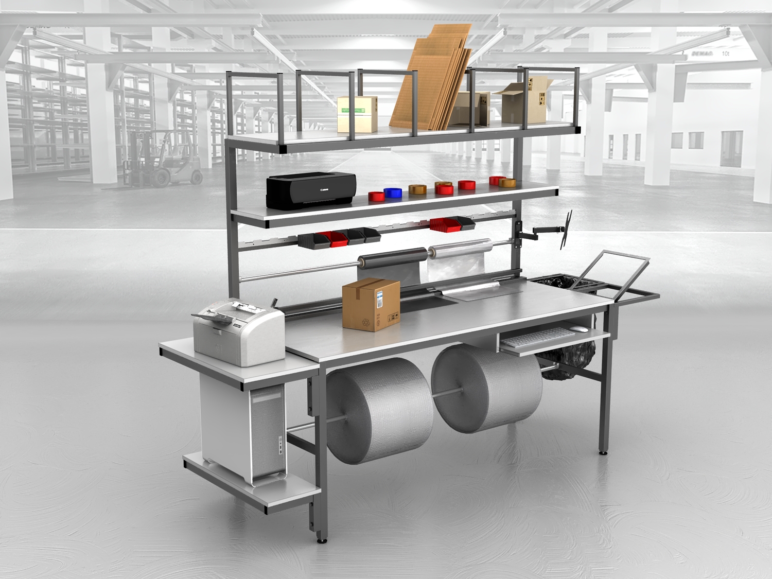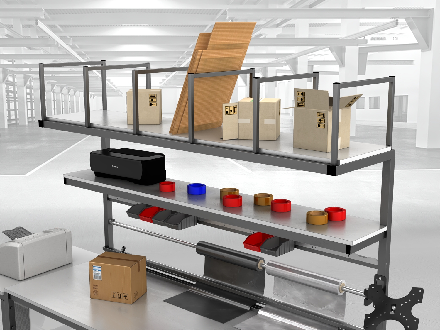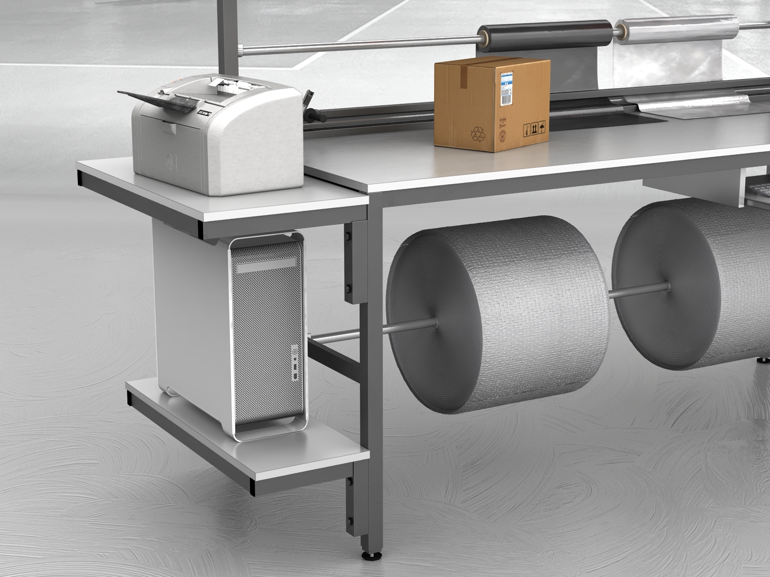 Stół do pakowania paczek to niezastąpione rozwiązanie dla firm poszukujących dobrego, ergonomicznego i funkcjonalnego stanowiska. Nasze stoły pakowe, produkowane są w Polsce, wyróżniają się spawaną solidną konstrukcją, podzieloną dwie części – stół oraz nadstawkę w celu ułatwienia transportu.