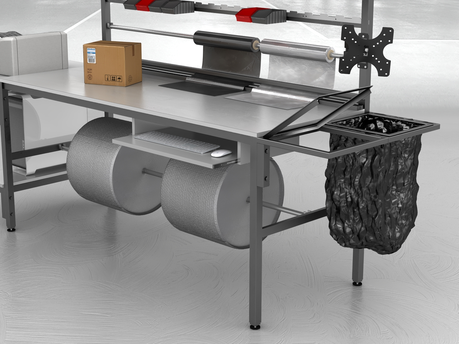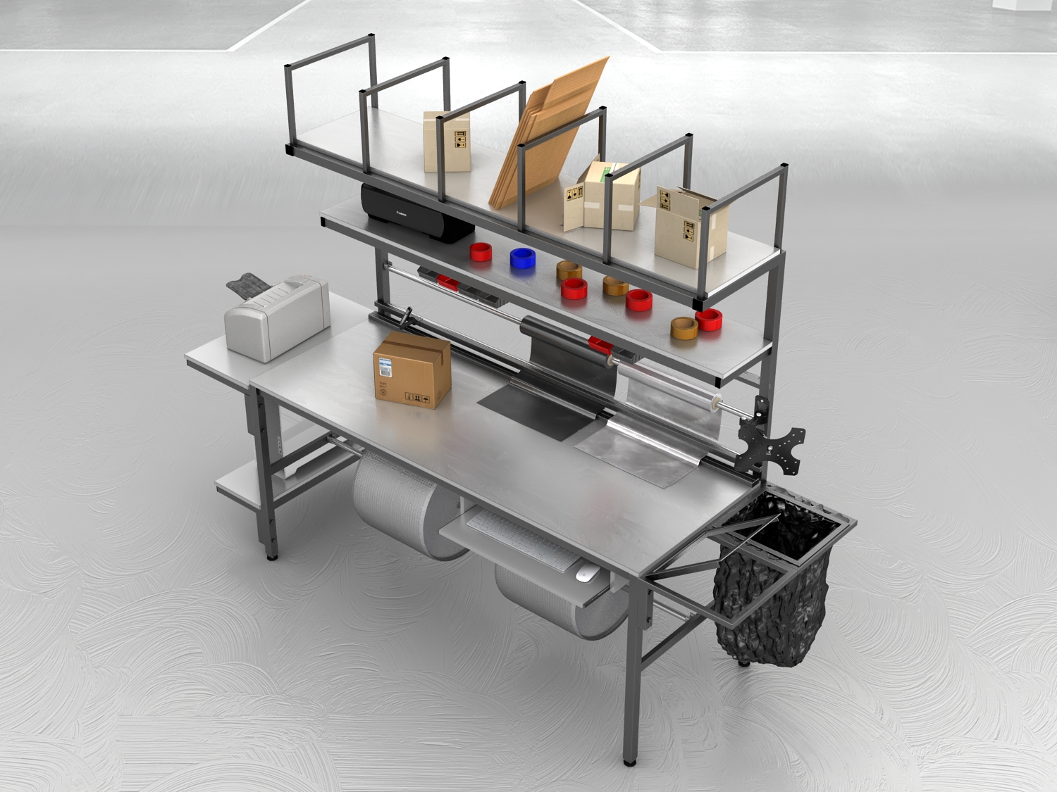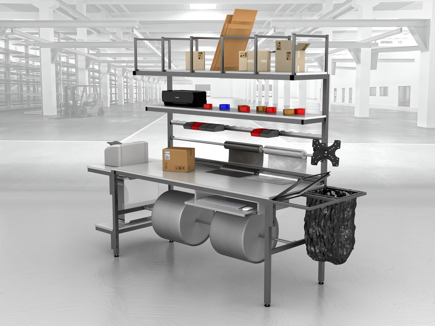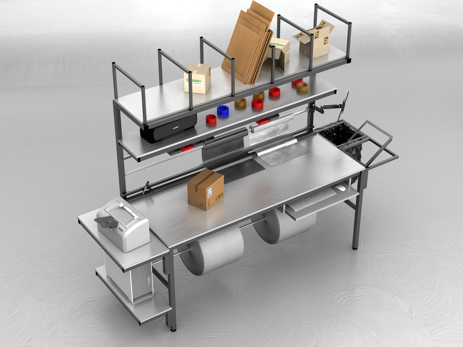 Stół do pakowania paczek to niezastąpione rozwiązanie dla firm poszukujących dobrego, ergonomicznego i funkcjonalnego stanowiska. Nasze stoły pakowe, produkowane są w Polsce, wyróżniają się spawaną solidną konstrukcją, podzieloną dwie części – stół oraz nadstawkę w celu ułatwienia transportu.
