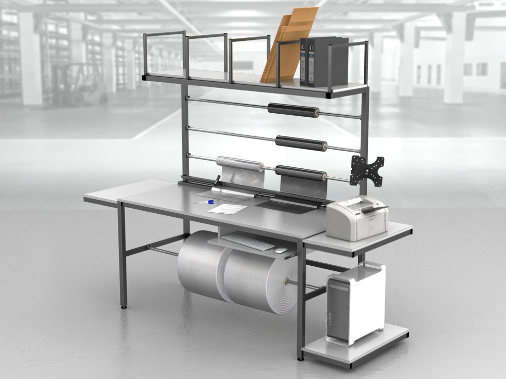 – możliwa lekka modyfikacja wymiarów z tej oferty wysokość półek itp..______________________________________________________Zalety naszych stołów:Dowolna zabudowa półki , oświetlenie , szafki , szuflady , przeloty kablowe , stopki , kółka, przesuwane przegrody, nóż do foli (do wyceny) Przed wykonaniem robimy wizualizacje 3D. Realizujemy też systemy stołów razem z stołami do rolowania ,wózkami na kartony i na papier.