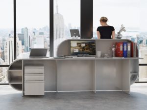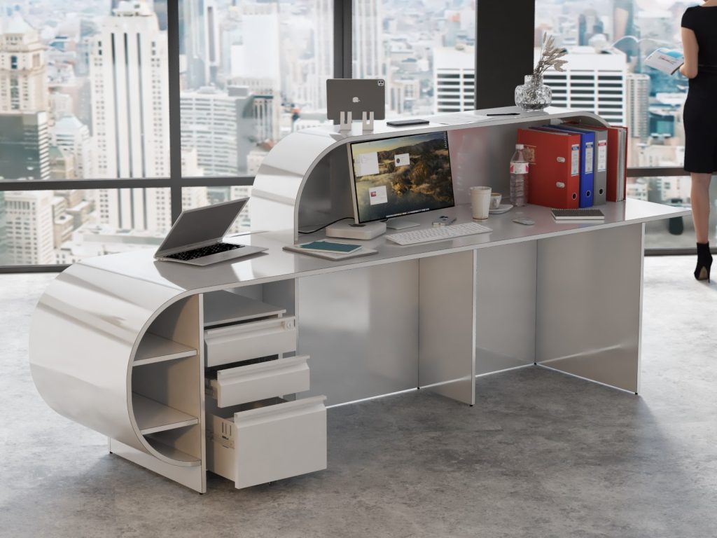 - Praktyczność: Ergonomiczna konstrukcja ułatwia pracę recepcjonisty, umożliwiając wygodną obsługę klientów, przechowywanie dokumentów i obsługę sprzętu biurowego.
